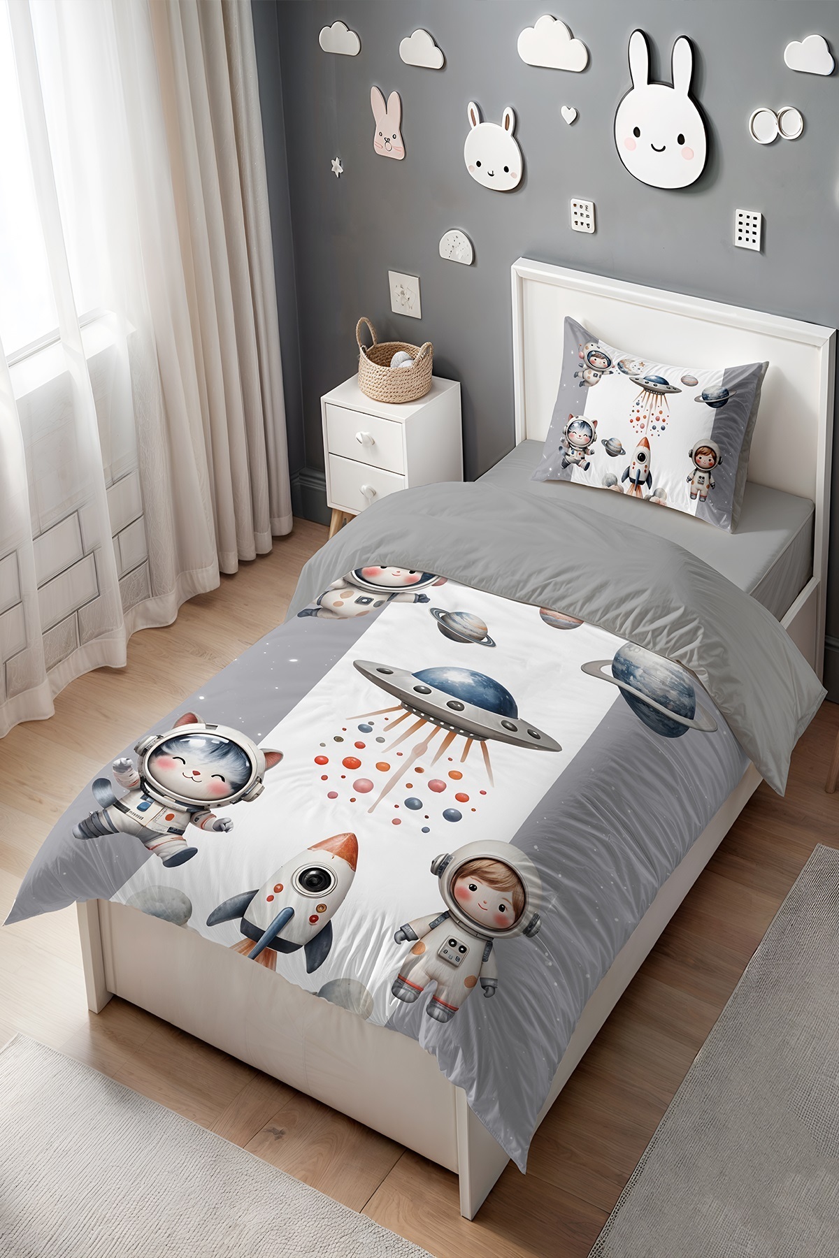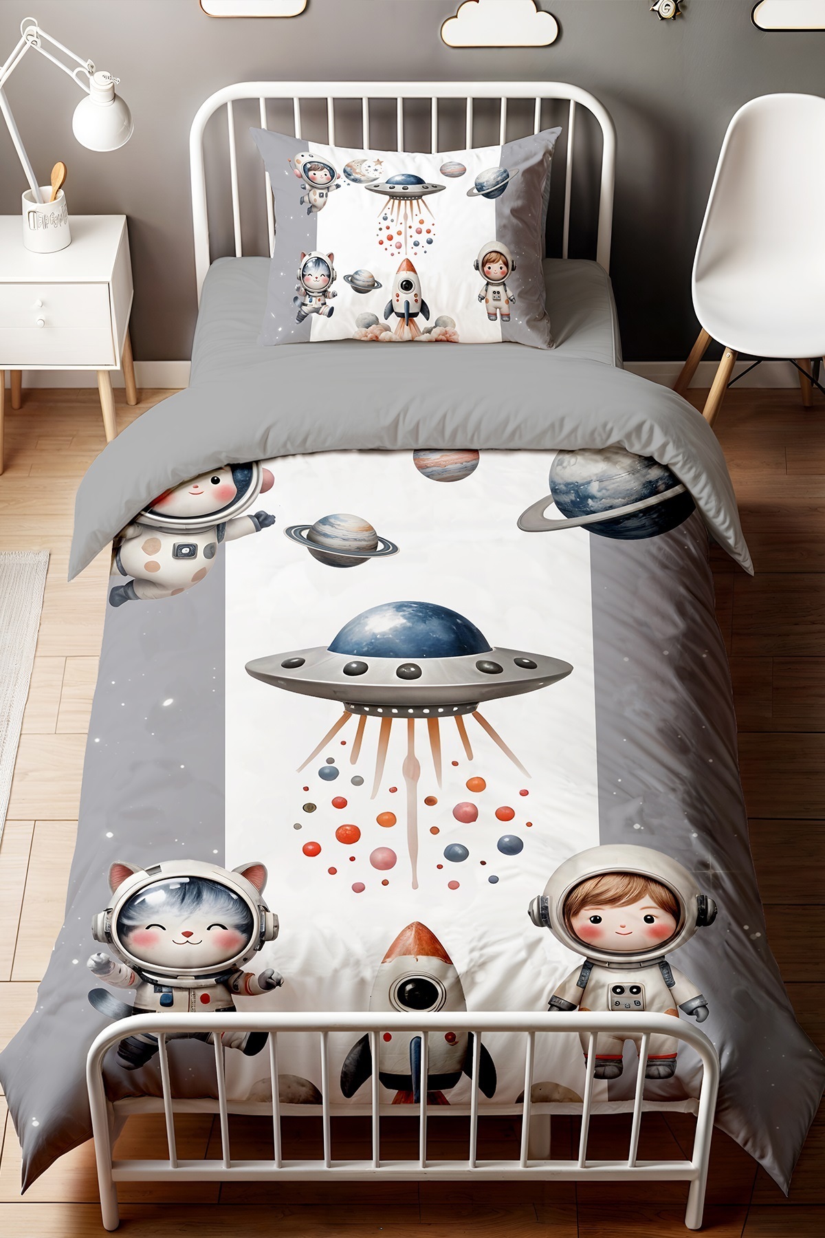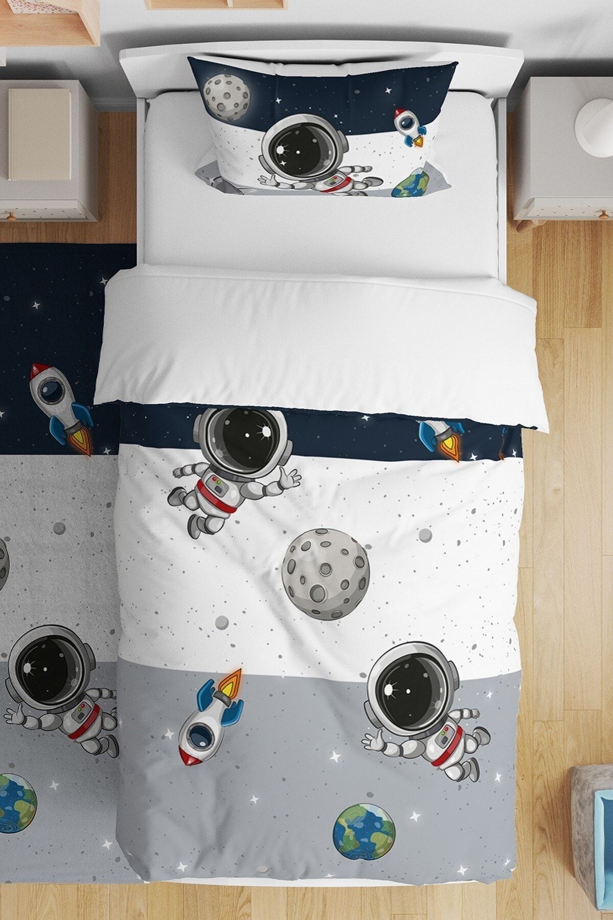 Kedi ve Çocuk Astronot Uzay Desenli Tek Kişilik Bebek Çocuk Nevresim Seti Kedi ve Çocuk Astronot Uzay Desenli Tek Kişilik Bebek Çocuk Nevresim Seti evnev00683 تک سایز