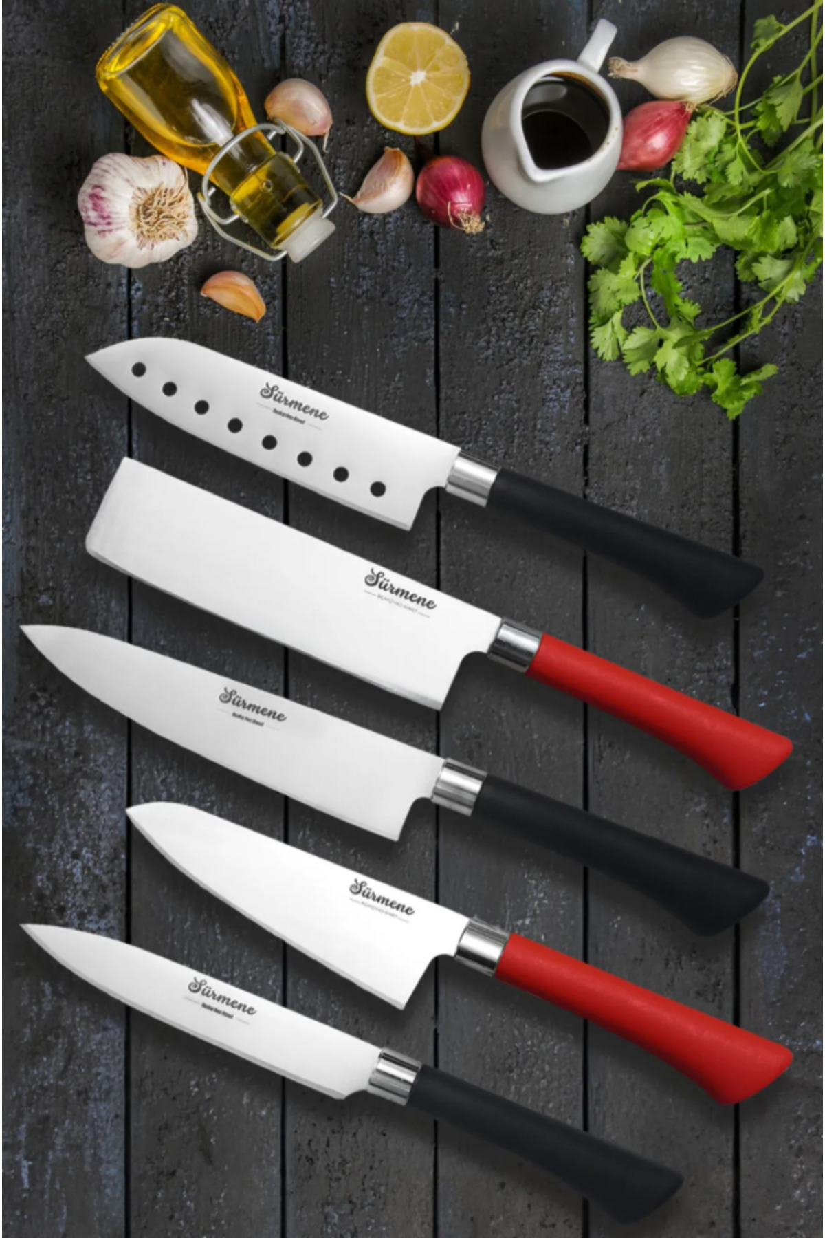 Colours 5 Parça Sürmene Şef Bıçağı Seti Profesyonel Santoku Suşi Nakiri Günlük Kullanım Çok Amaçlı Colours 5 Parça Sürmene Şef Bıçağı Seti Profesyonel Santoku Suşi Nakiri Günlük Kullanım Çok Amaçlı ÇiftRenkli5Parca تک سایز