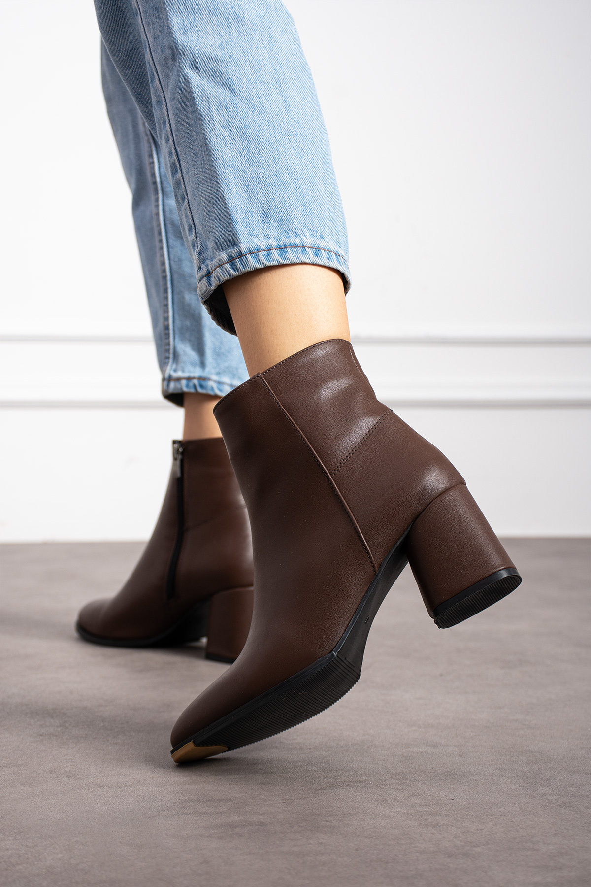 Kahve Mat Fermuar Detaylı Rahat Kadın Topuklu Bot Kahve Mat Fermuar Detaylı Rahat Kadın Topuklu Bot 0258963 40