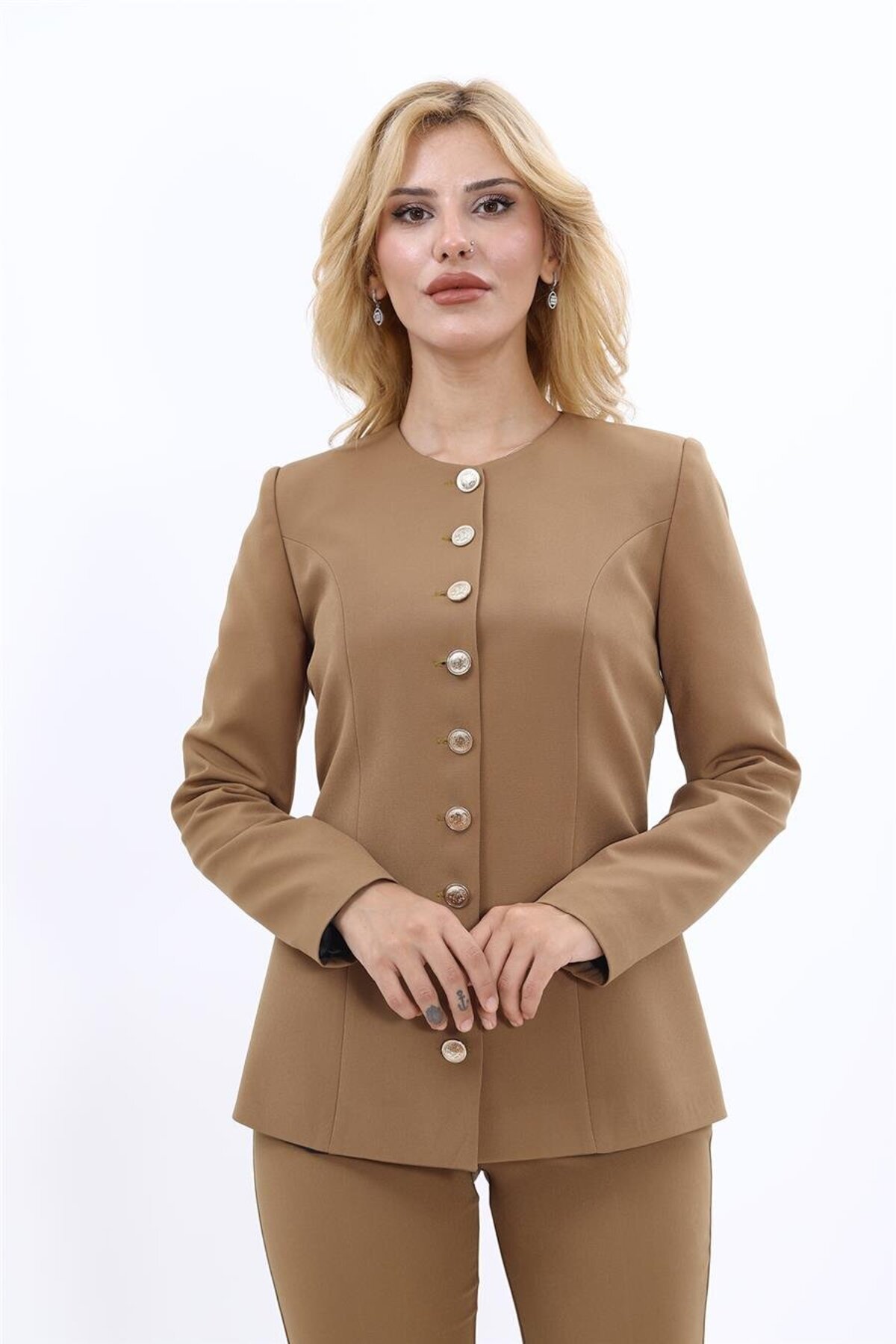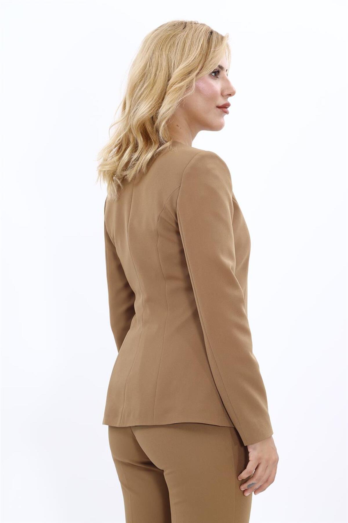 Sıfır Yaka Boydan Düğmeli Ceket-Camel Sıfır Yaka Boydan Düğmeli Ceket-Camel 1064100 44