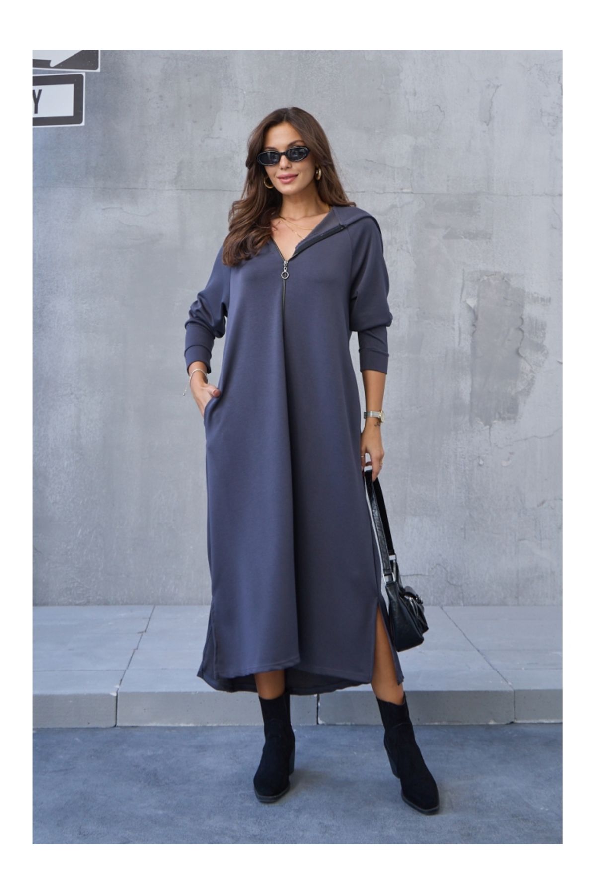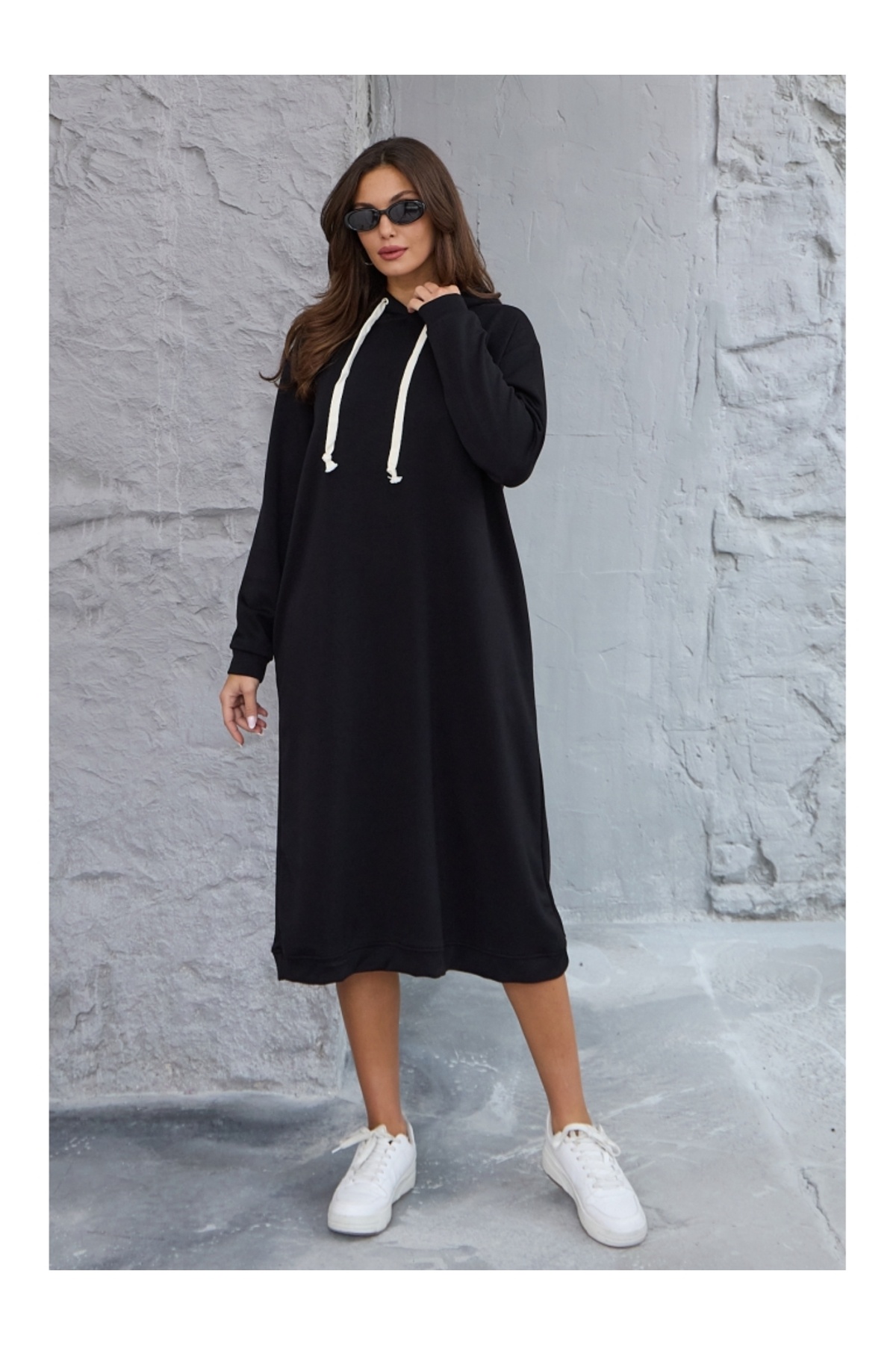 Siyah Kapşonlu Modal Elbise Siyah Kapşonlu Modal Elbise 8074 L