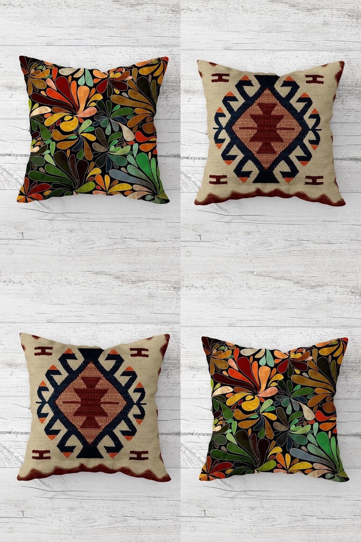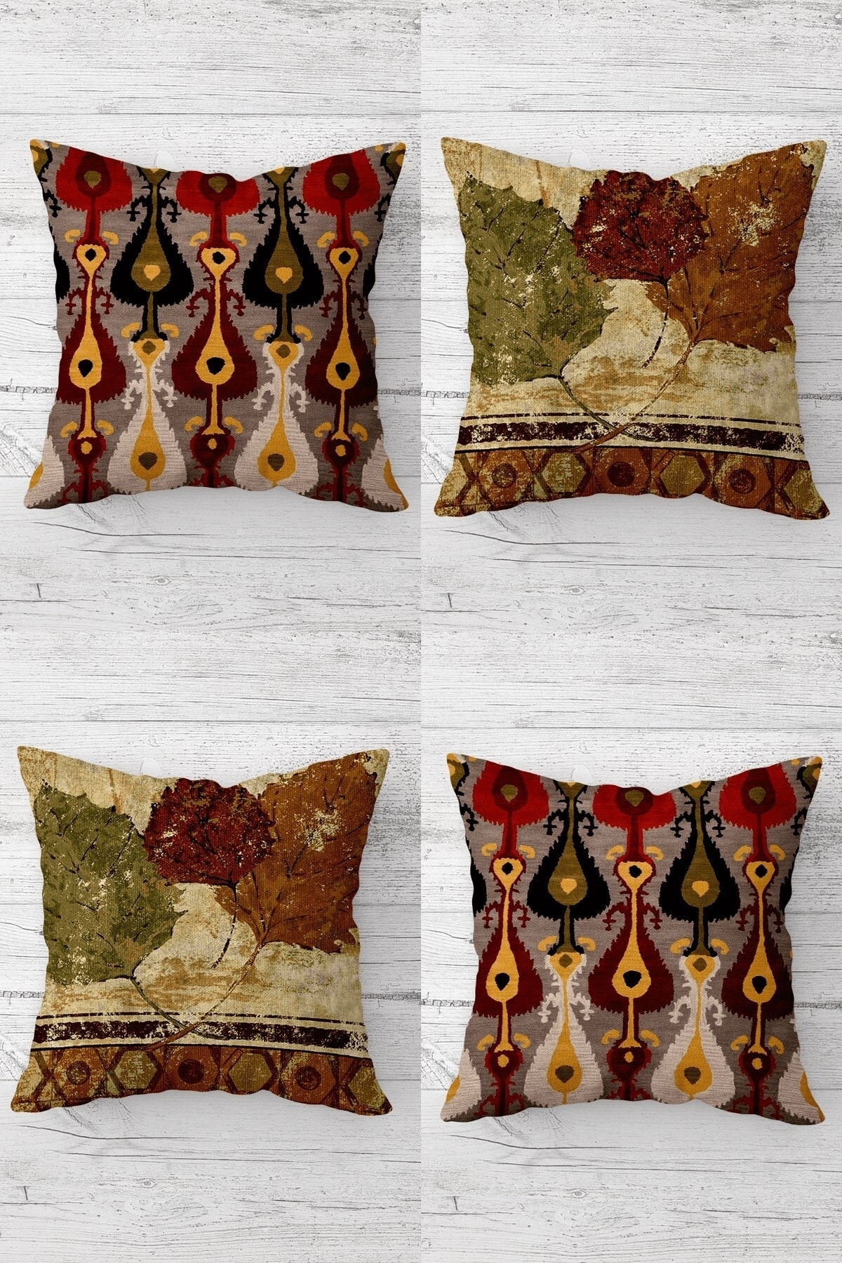 Dijital Baskılı Hediyelik Koltuk 4'lü Kırlent Yastık Kılıfı | kahve mavi sarı kahve geometrik desen Dijital Baskılı Hediyelik Koltuk 4'lü Kırlent Yastık Kılıfı | kahve mavi sarı kahve geometrik desen 43 x 43