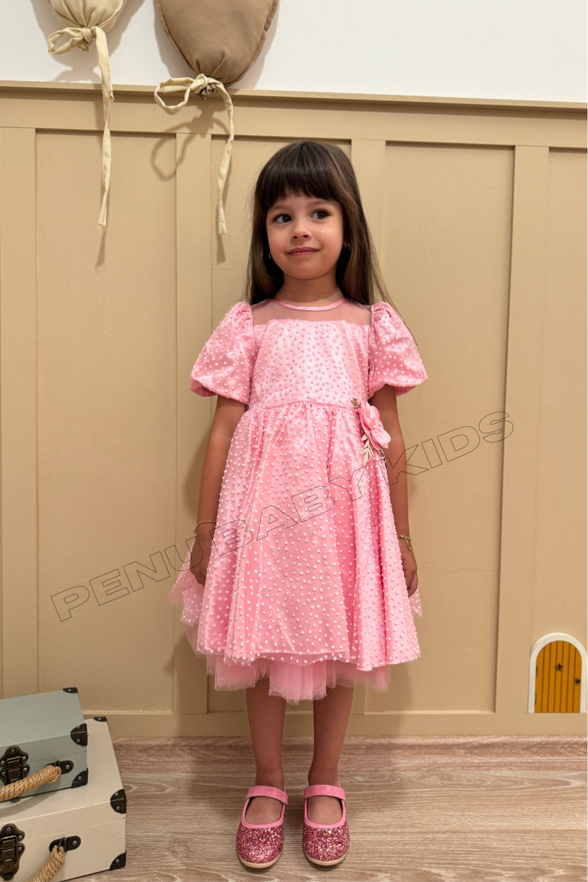 Pembe Küçük Simli Puanlı Kısa Kol Kız Çocuk Kız Bebek Elbise Pembe Küçük Simli Puanlı Kısa Kol Kız Çocuk Kız Bebek Elbise simlipuan 5 Yaş