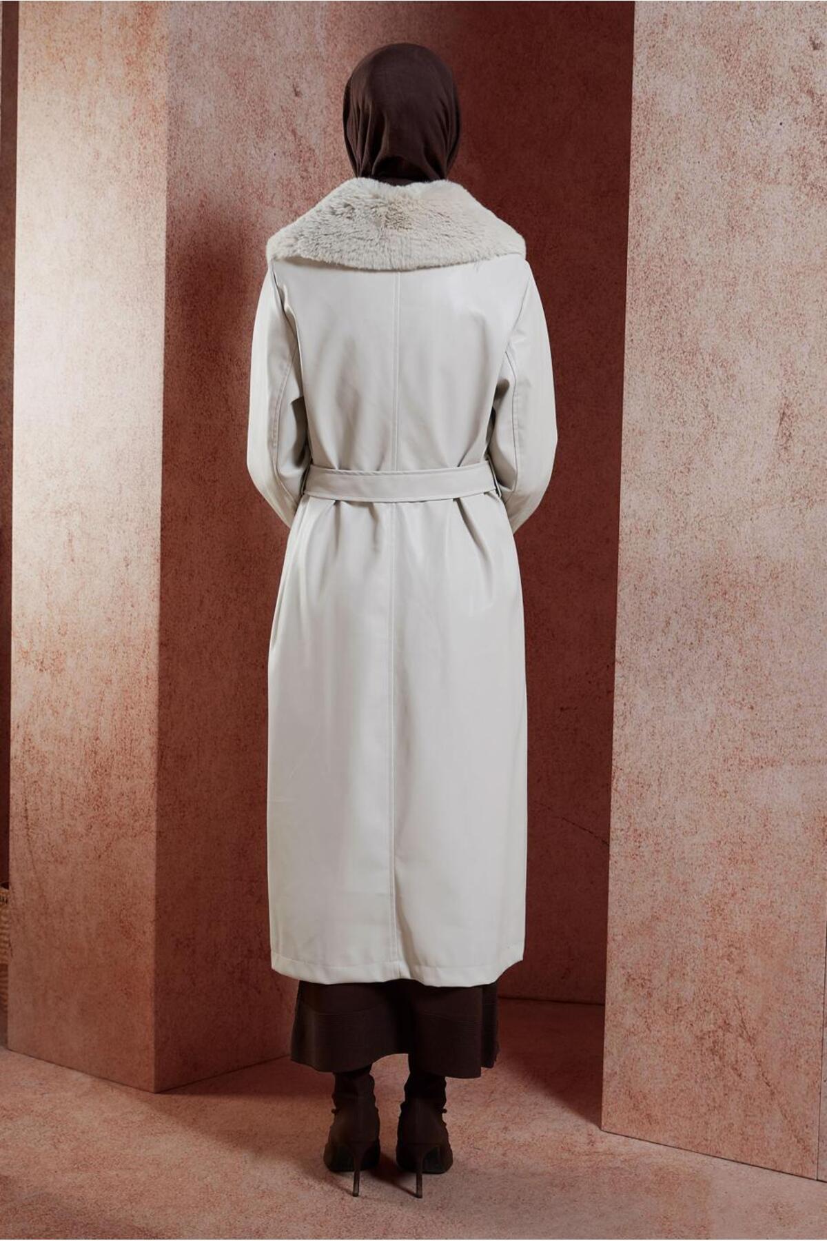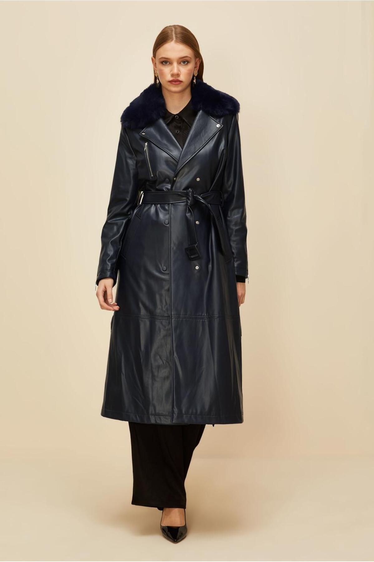 KÜRK DETAYLI SUNİ DERİ TRENÇKOT 10909 KÜRK DETAYLI SUNİ DERİ TRENÇKOT 10909 25KTRC0010909 48