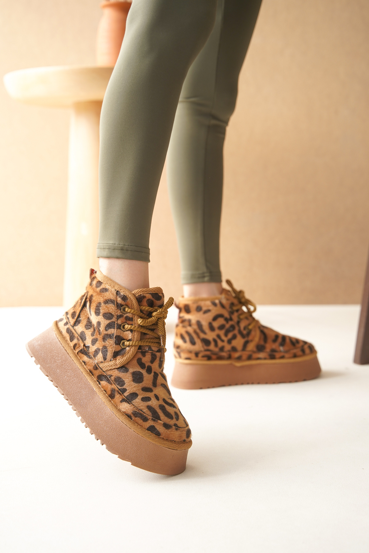 Hugu Bağcıklı Kalın Tabanlı İçi Kürklü Kadın Bot Leopar Hugu Bağcıklı Kalın Tabanlı İçi Kürklü Kadın Bot Leopar G12936M131116 40