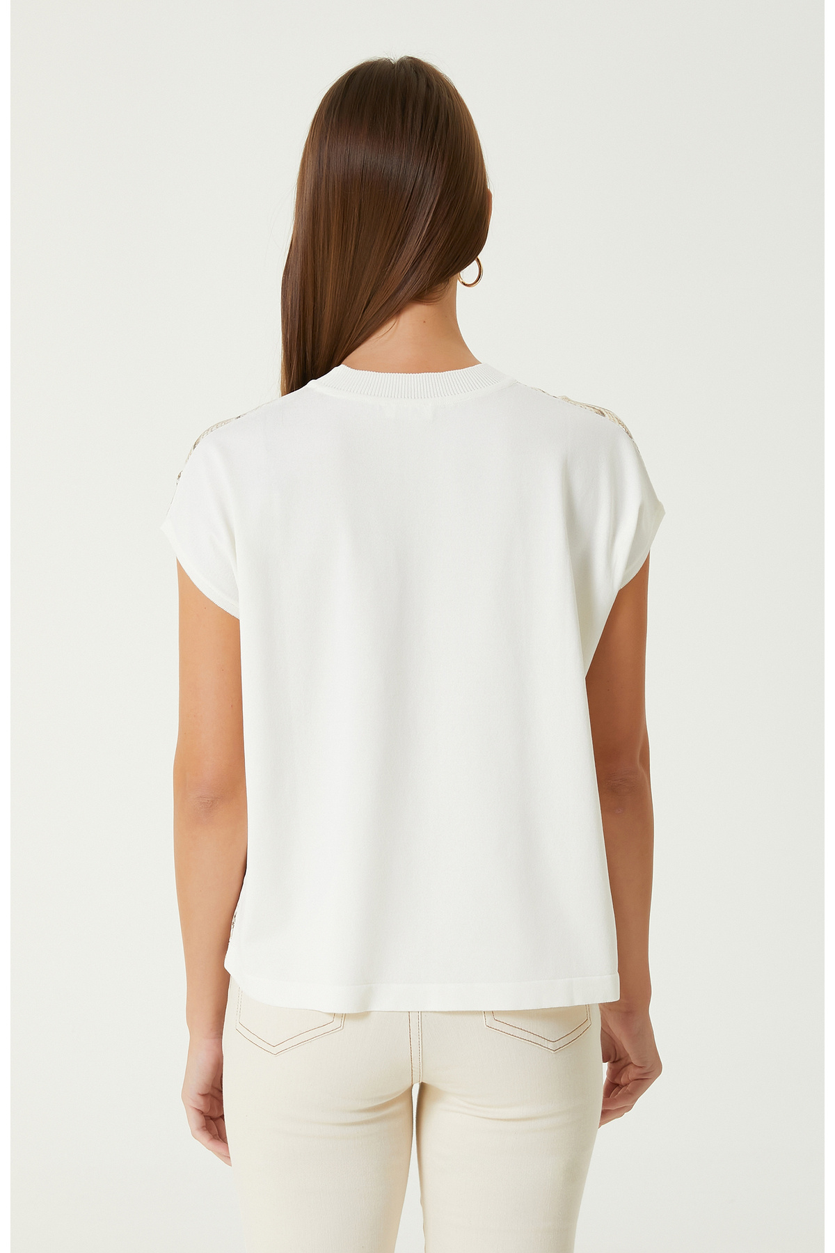 Kırık Beyaz Desen Detaylı Triko Kazak Kırık Beyaz Desen Detaylı Triko Kazak 1092214 XL