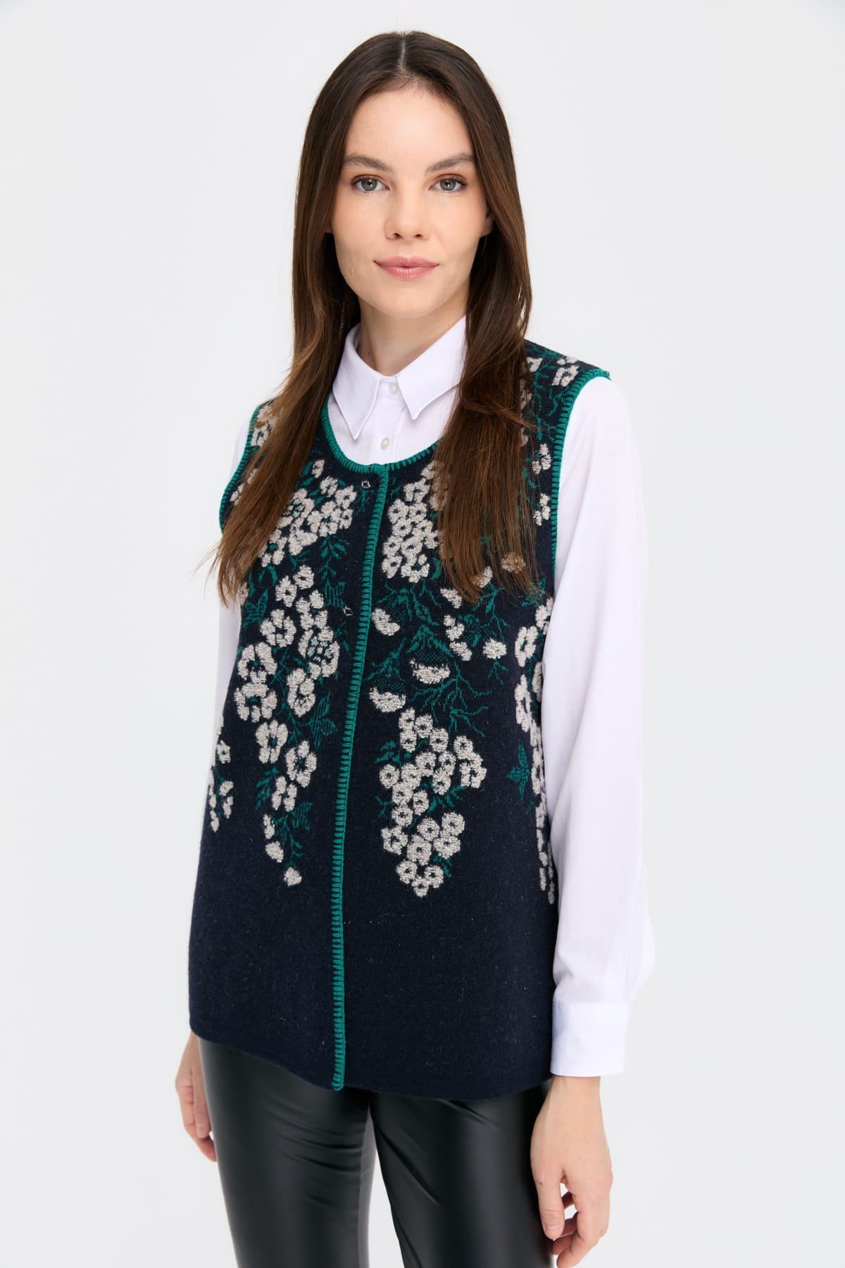 Kadın Sıfır Yaka Pıtırcık Çiçekli Yün Yelek Siyah Kadın Sıfır Yaka Pıtırcık Çiçekli Yün Yelek Siyah TYC4882A9403AA9A10 XL