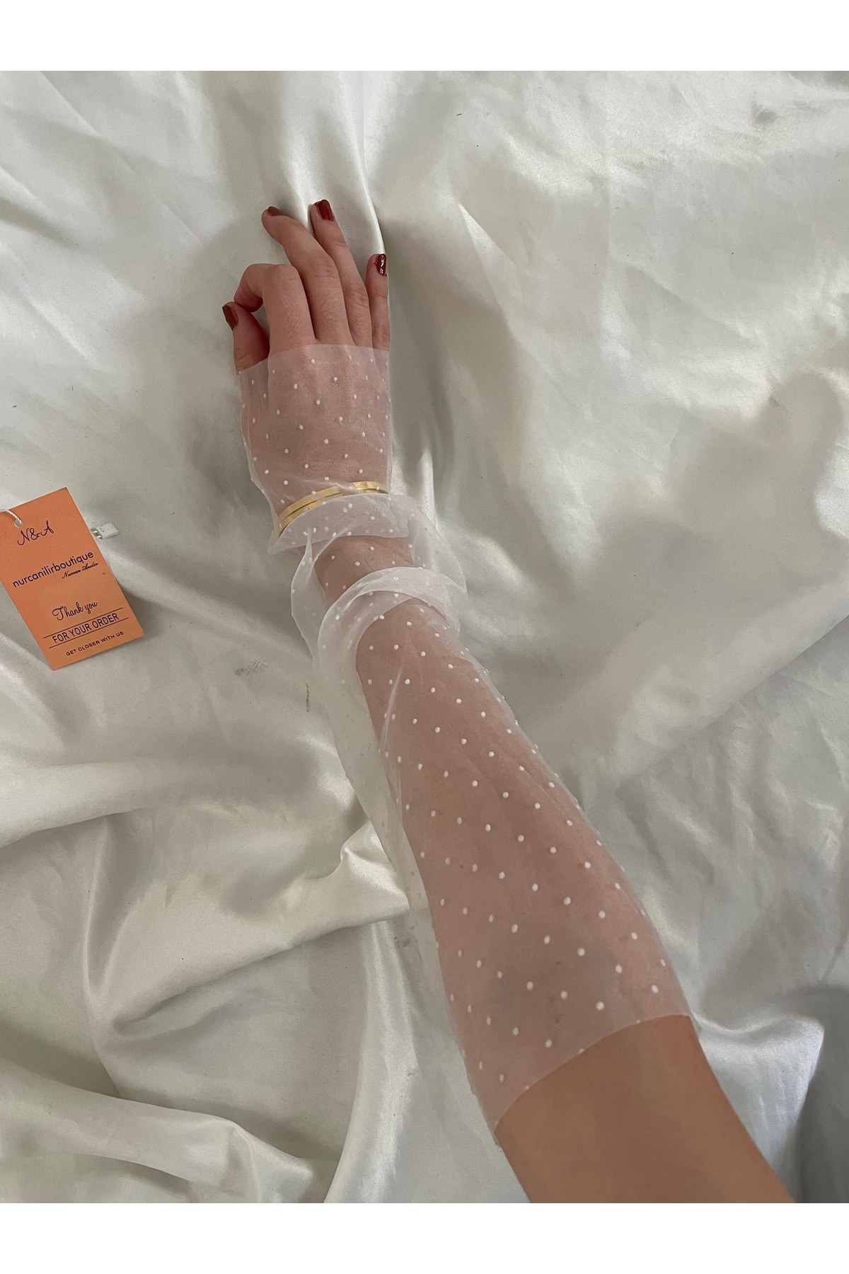 Beyaz Puantiye detaylı eldiven kolluk Beyaz Puantiye detaylı eldiven kolluk BYZ0263PUANT S