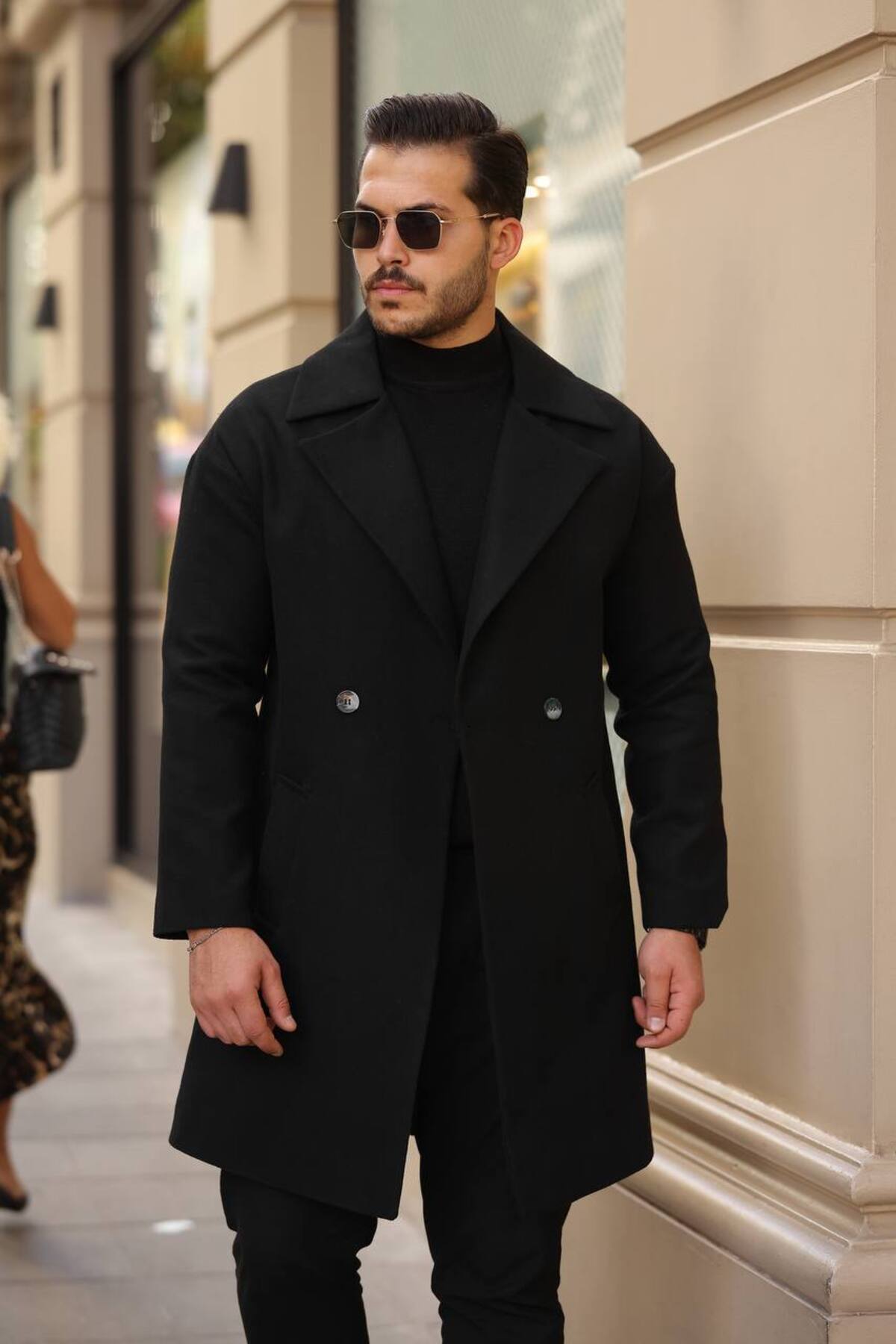 Erkek Oversize Kaşe Kaban Siyah bol kesim uzun kaliteli kumaş Erkek Oversize Kaşe Kaban Siyah bol kesim uzun kaliteli kumaş TYCE698AA362031102 2XL