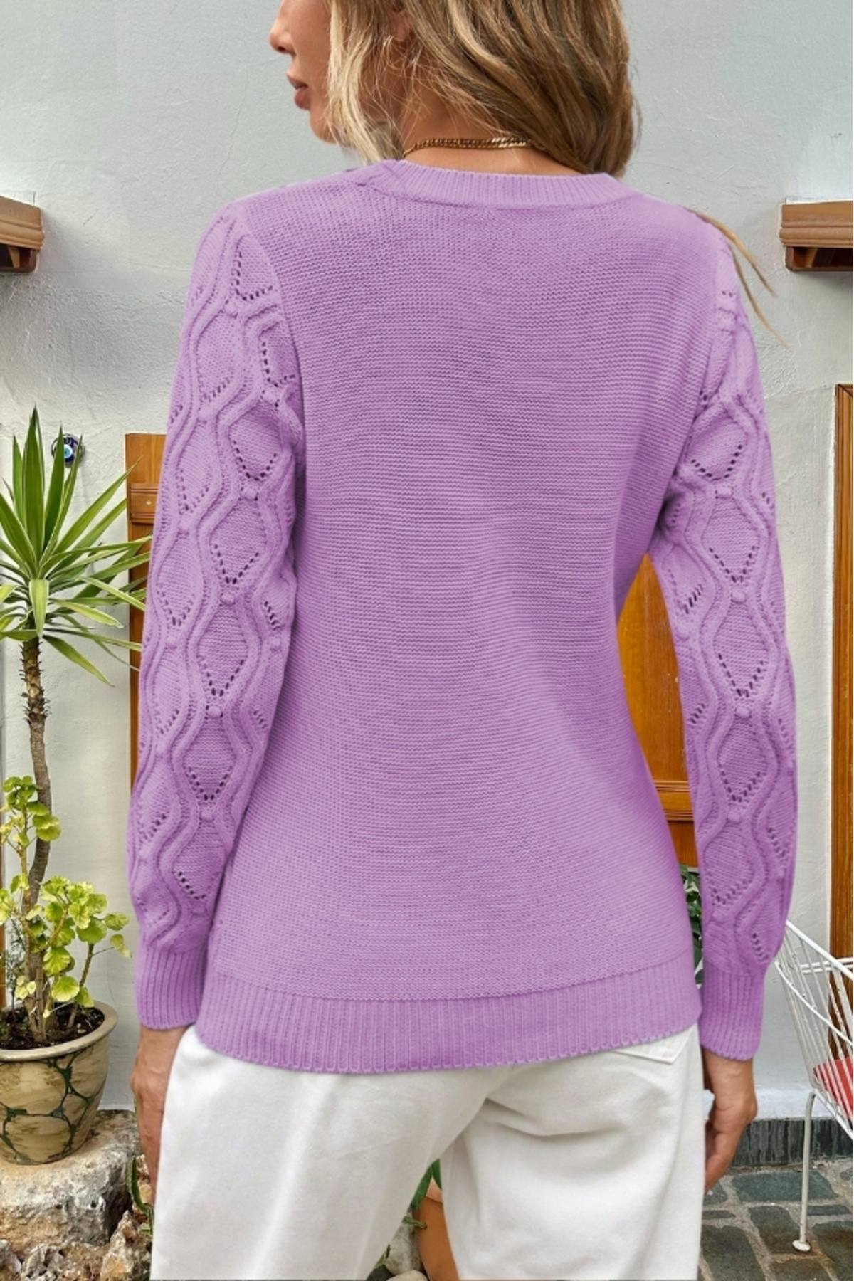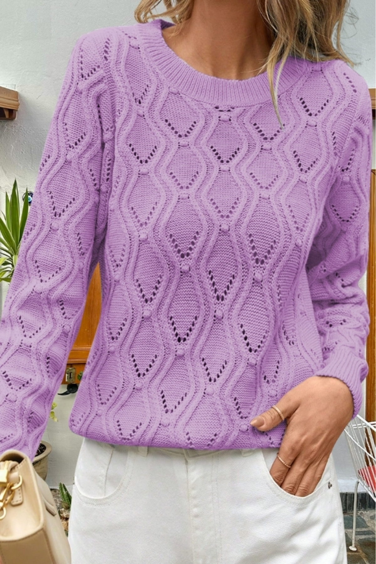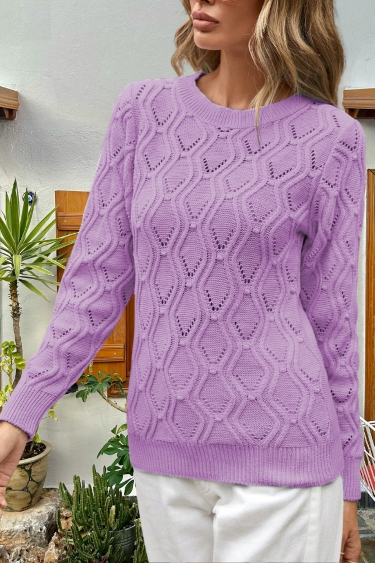 Kadın Ajurlu Desenli Triko Örme Lila Kazak Kadın Ajurlu Desenli Triko Örme Lila Kazak hnp-0455 XL