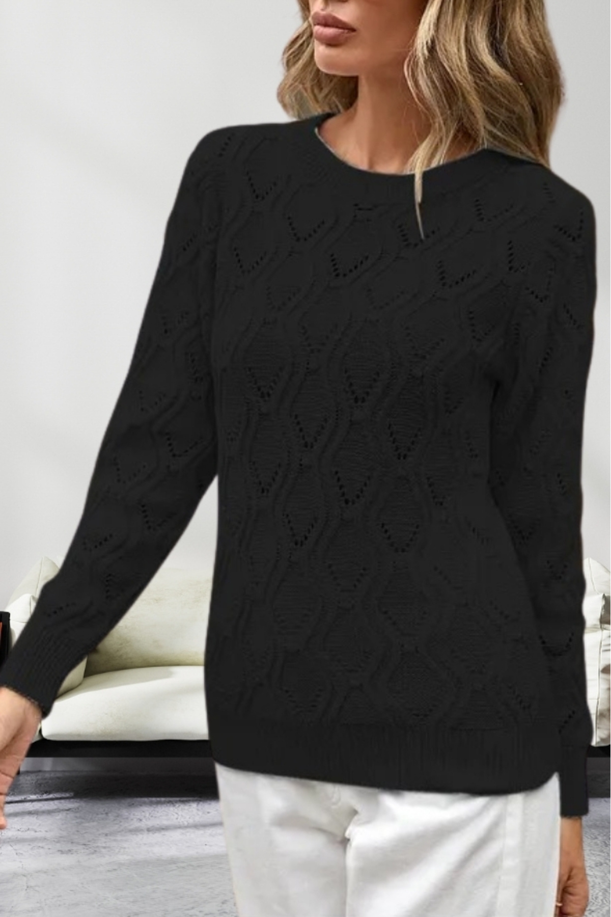 Kadın Ajurlu Desenli Triko Örme Siyah Kazak Kadın Ajurlu Desenli Triko Örme Siyah Kazak hnp-0455 XL
