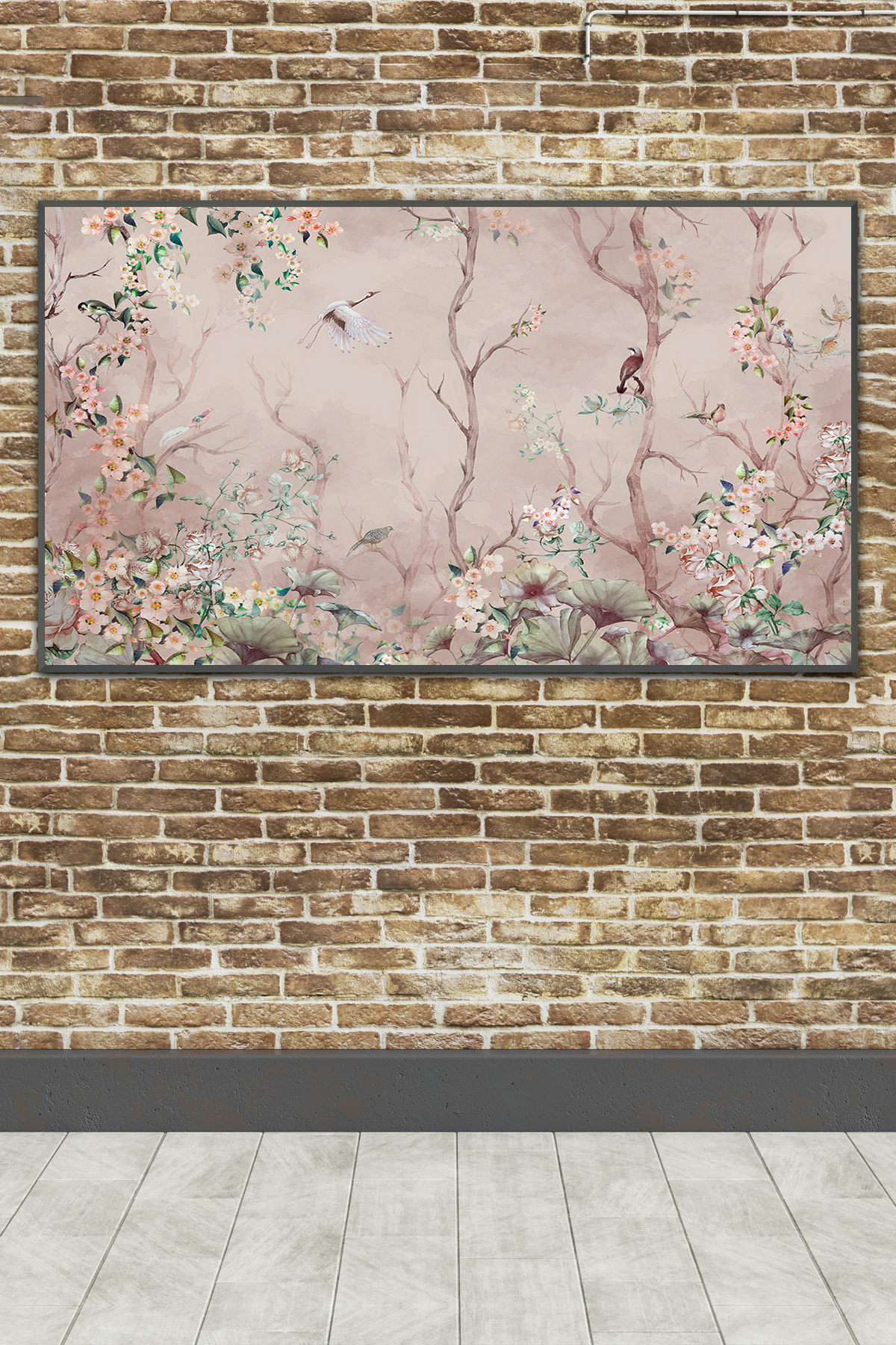 Çiçek ve kuş desenli, pastel tonlarda tekstil tabanlı tek parça poster duvar kağıdı - Postermarketi Çiçek ve kuş desenli, pastel tonlarda tekstil tabanlı tek parça poster duvar kağıdı - Postermarketi 2337270214 550 x 280