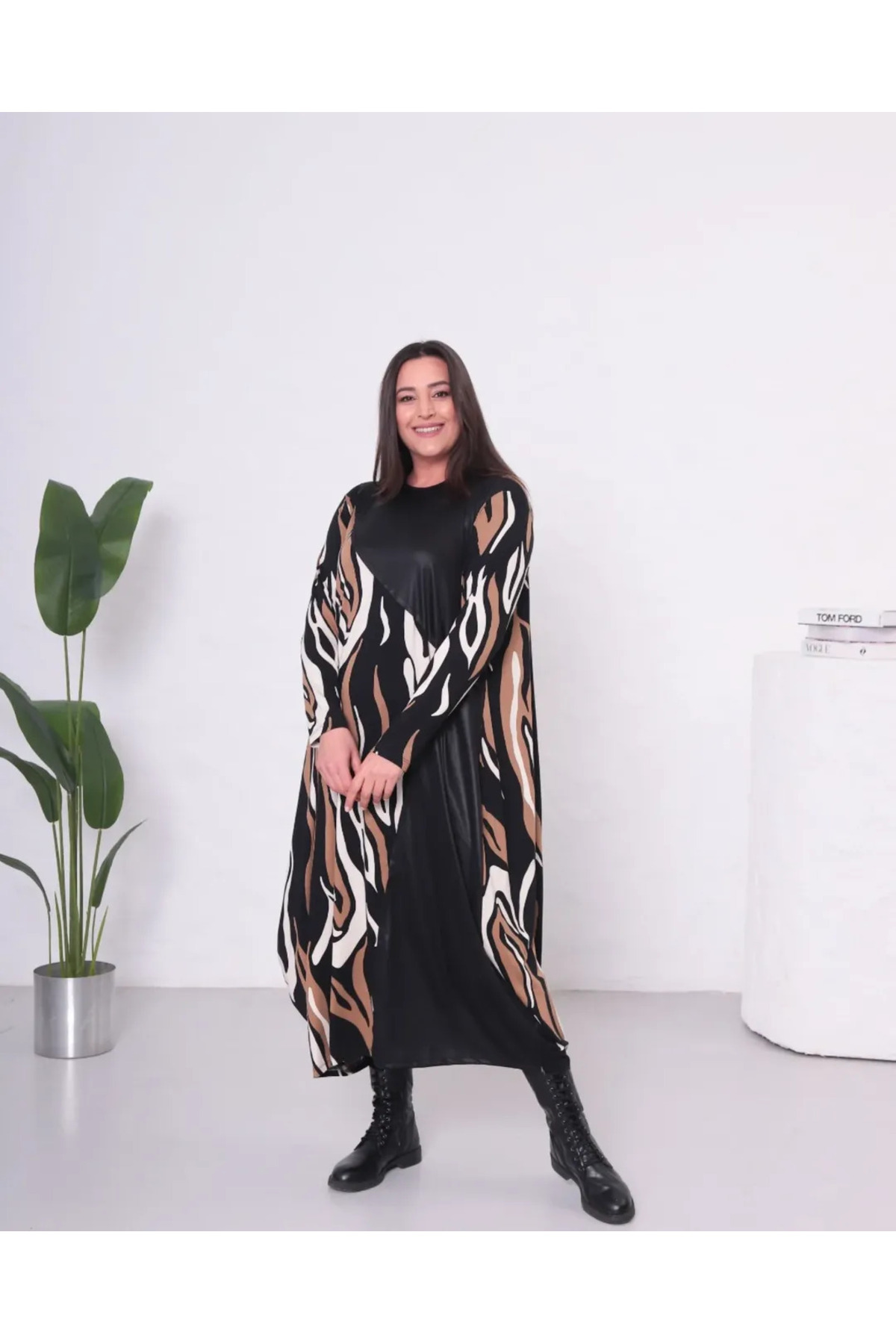 Kadın Büyük Beden Jumbo Uzun Kollu Tasarım Elbise Kadın Büyük Beden Jumbo Uzun Kollu Tasarım Elbise TYCC177229E11CB000 58