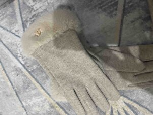 Kadın Bileği Kürklü Dokunmatik Bej Eldiven ELD29 Kadın Bileği Kürklü Dokunmatik Bej Eldiven ELD29 ELD05 تک سایز