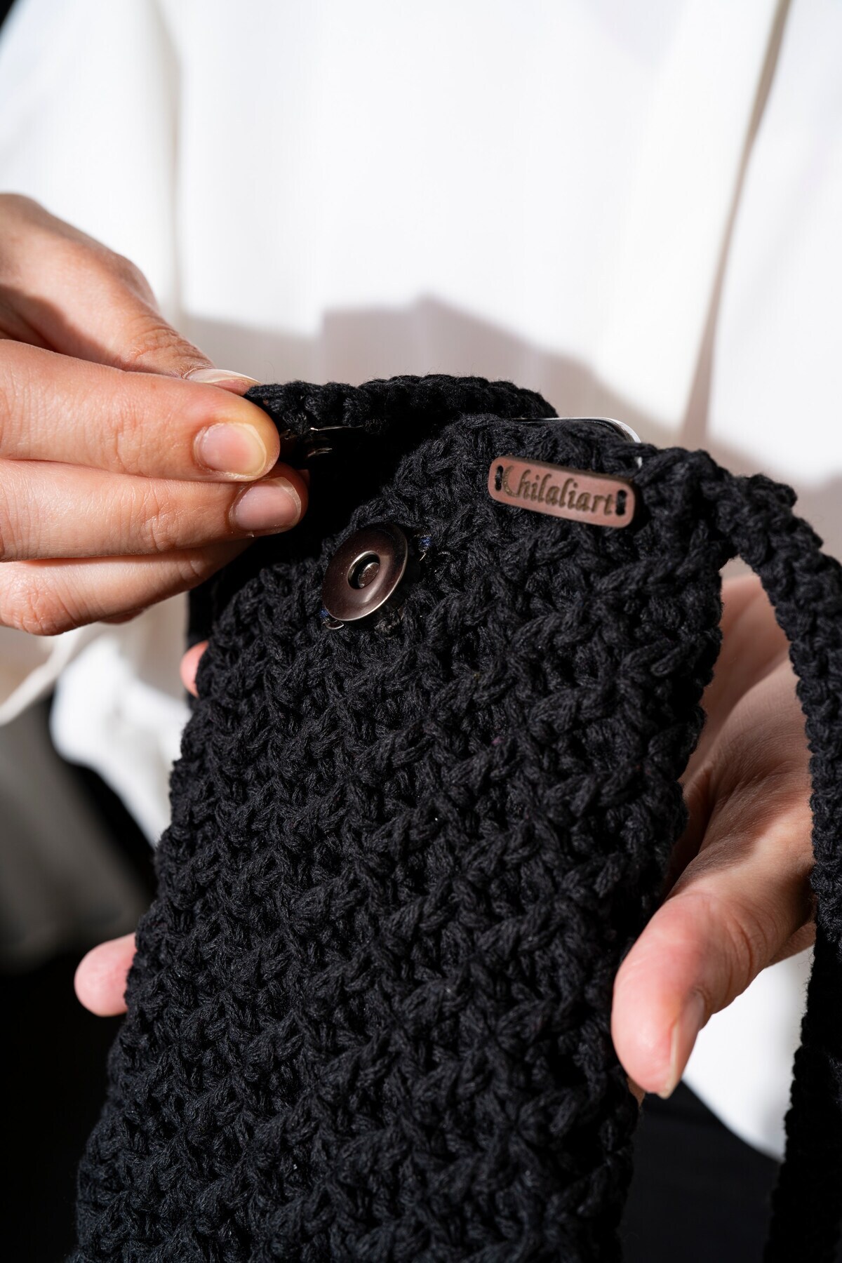 Siyah El Örgüsü Cep Telefonu Çantası Siyah El Örgüsü Cep Telefonu Çantası Hilali0063 Standart
