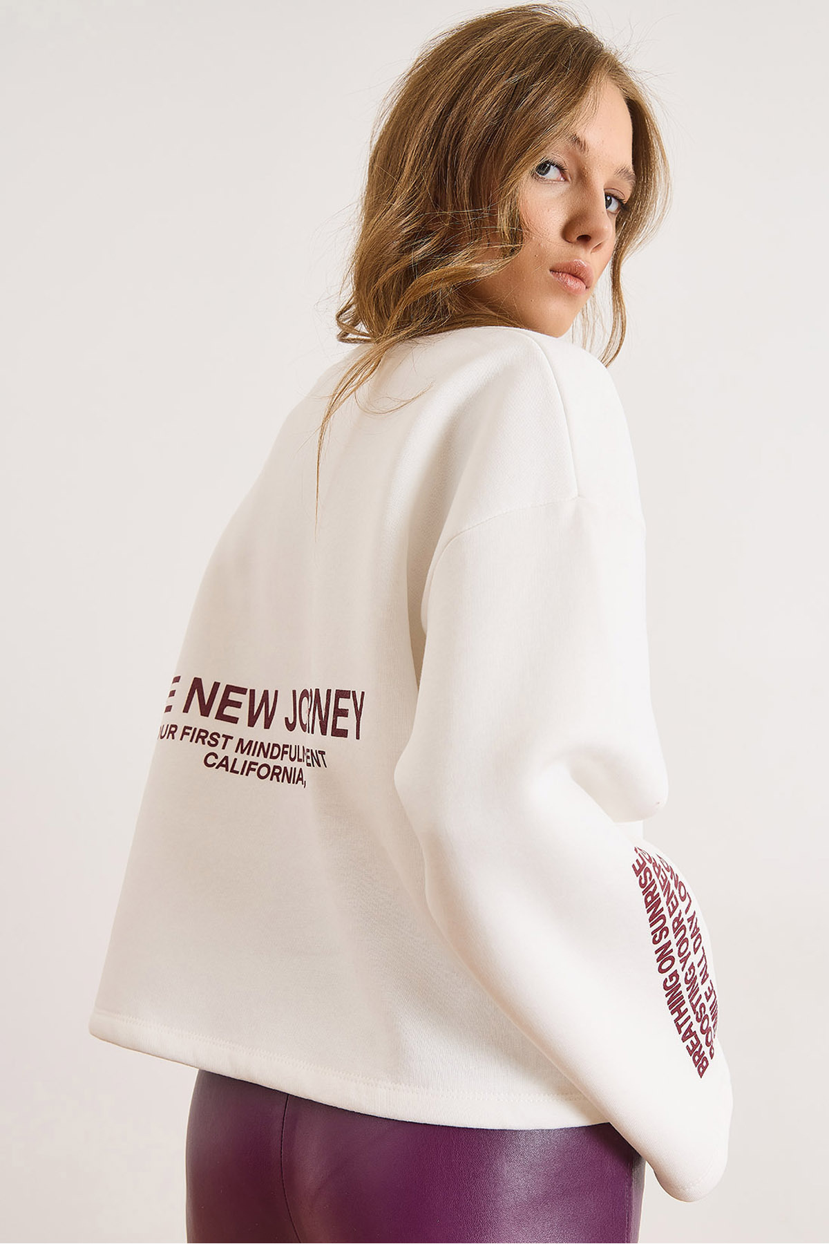 Kadın Beyaz Kapüşonlu Kalp Nakışlı Şardonlu Crop Sweatshirt SWT-19000681 Kadın Beyaz Kapüşonlu Kalp Nakışlı Şardonlu Crop Sweatshirt SWT-19000681 L
