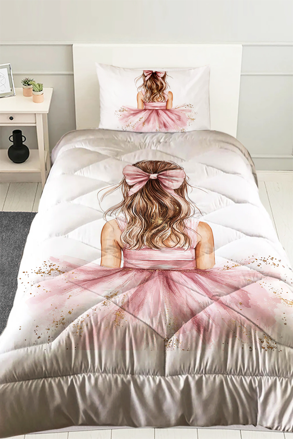 Pembe Fiyonklu Sarı Kız Desenli Çocuk Tek Kişilik Dekoratif Yatak Örtüsü Yastık Kılıflı Pembe Fiyonklu Sarı Kız Desenli Çocuk Tek Kişilik Dekoratif Yatak Örtüsü Yastık Kılıflı elsedkrytkkiz تک سایز