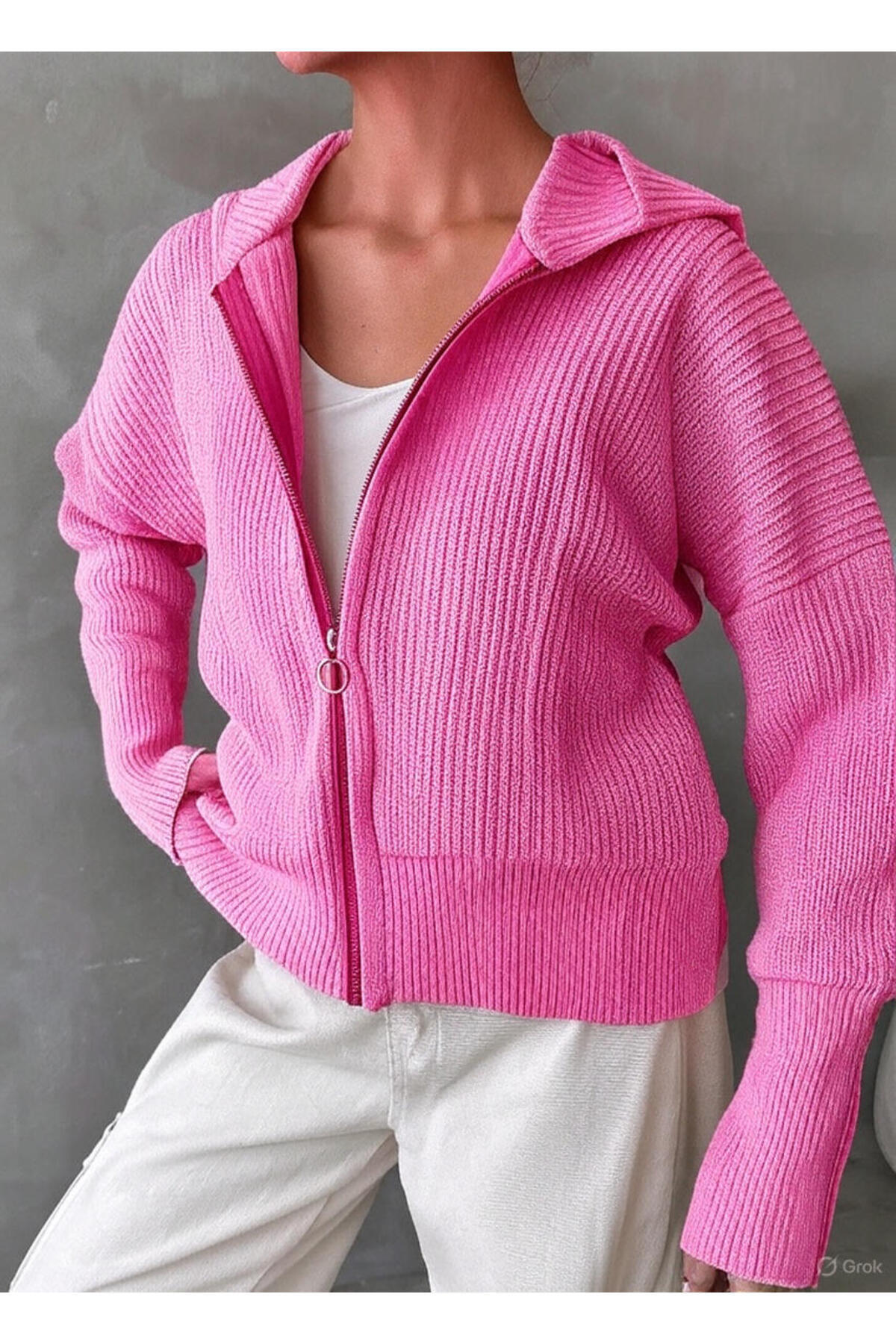 Kadın Fermuarlı Triko Hırka Kadın Fermuarlı Triko Hırka bns000753 Standart