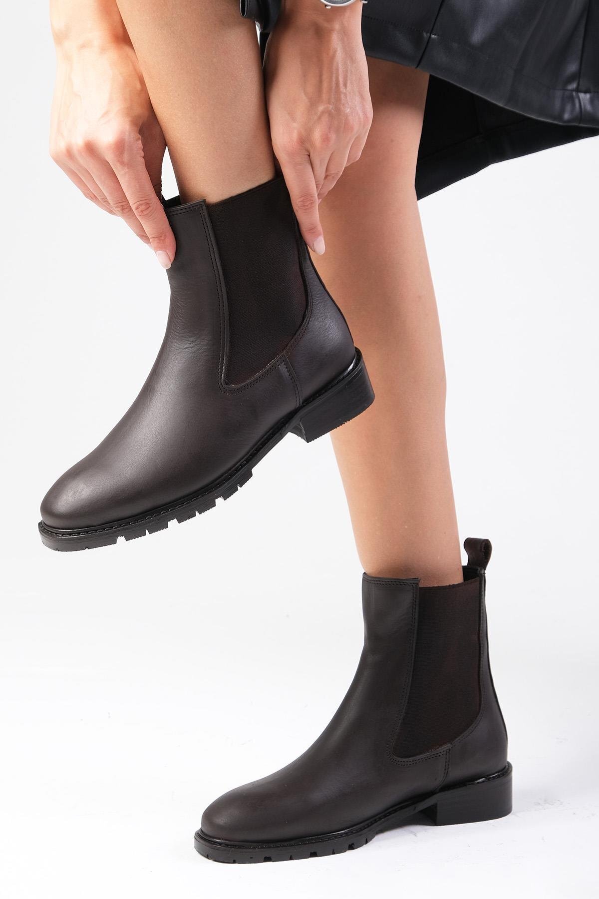 Arlo Hakiki Deri Oval Burun Kahverengi Kadın Lastikli Düz Bot Arlo Hakiki Deri Oval Burun Kahverengi Kadın Lastikli Düz Bot 05851BRC 41
