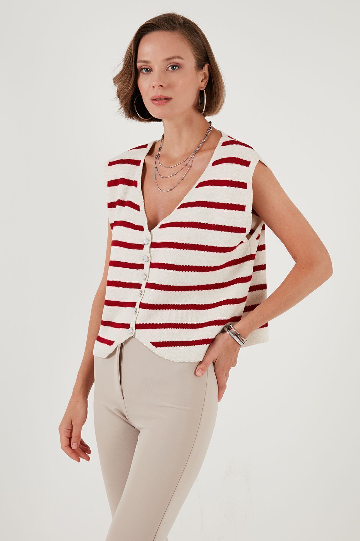 Çizgili Oversize Fit V Yaka Düğmeli Yelek YELEK 4616175 Çizgili Oversize Fit V Yaka Düğmeli Yelek YELEK 4616175 تک سایز