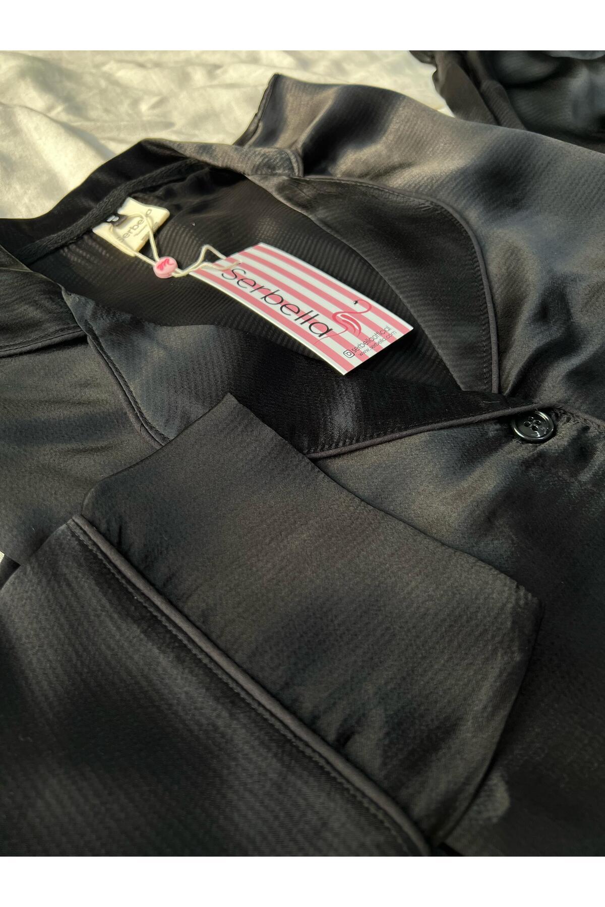 Luxury Siyah Jakarlı Pamuk Saten Pijama Takımı Luxury Siyah Jakarlı Pamuk Saten Pijama Takımı lxry-syh-czgl-777 XL