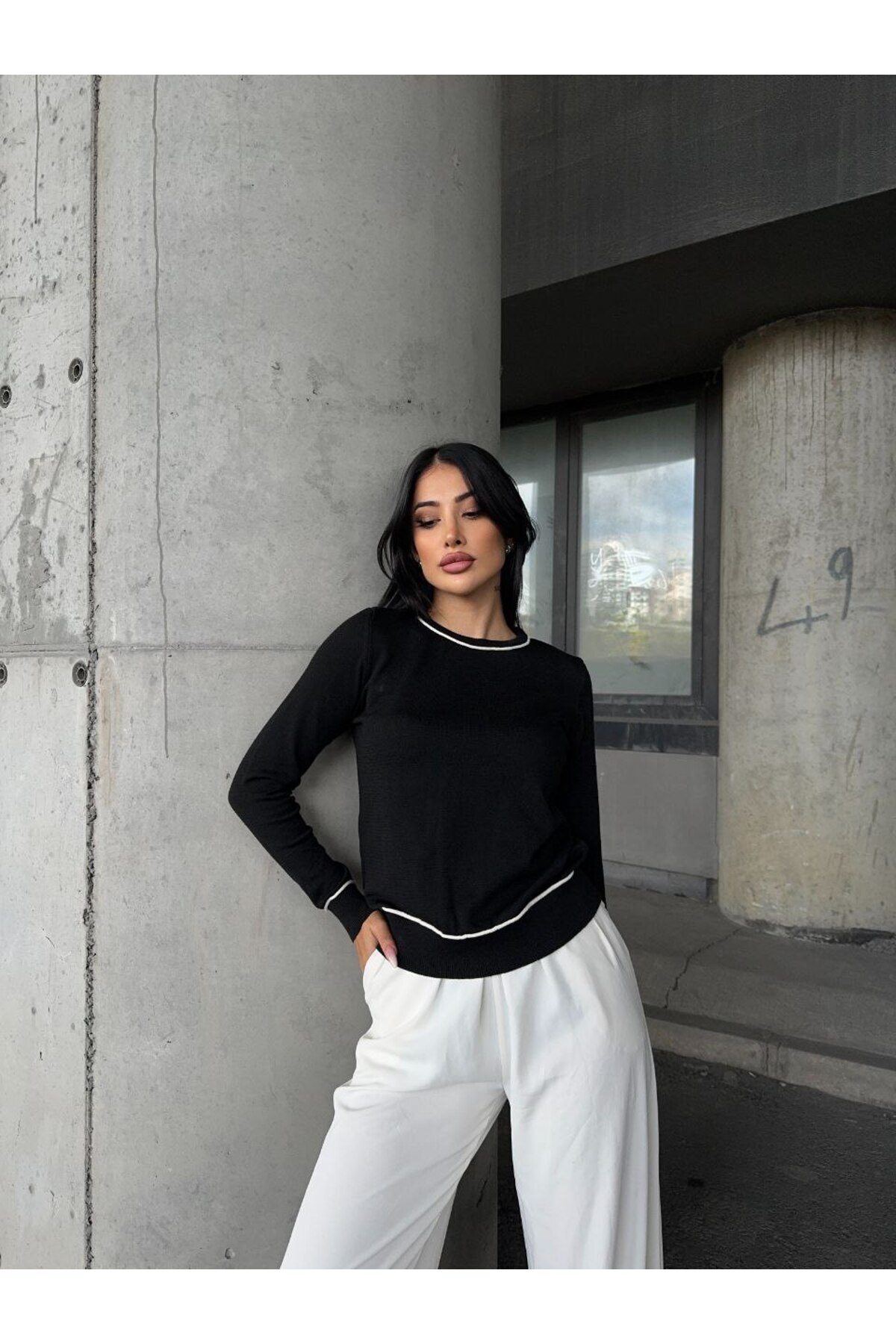 Kadın Bisiklet Yaka Beli Lastikli Triko Kazak Kadın Bisiklet Yaka Beli Lastikli Triko Kazak 24K003391 Standart