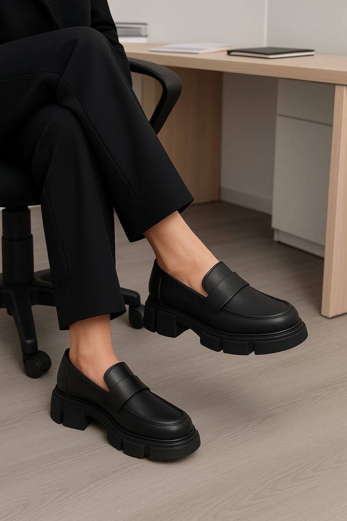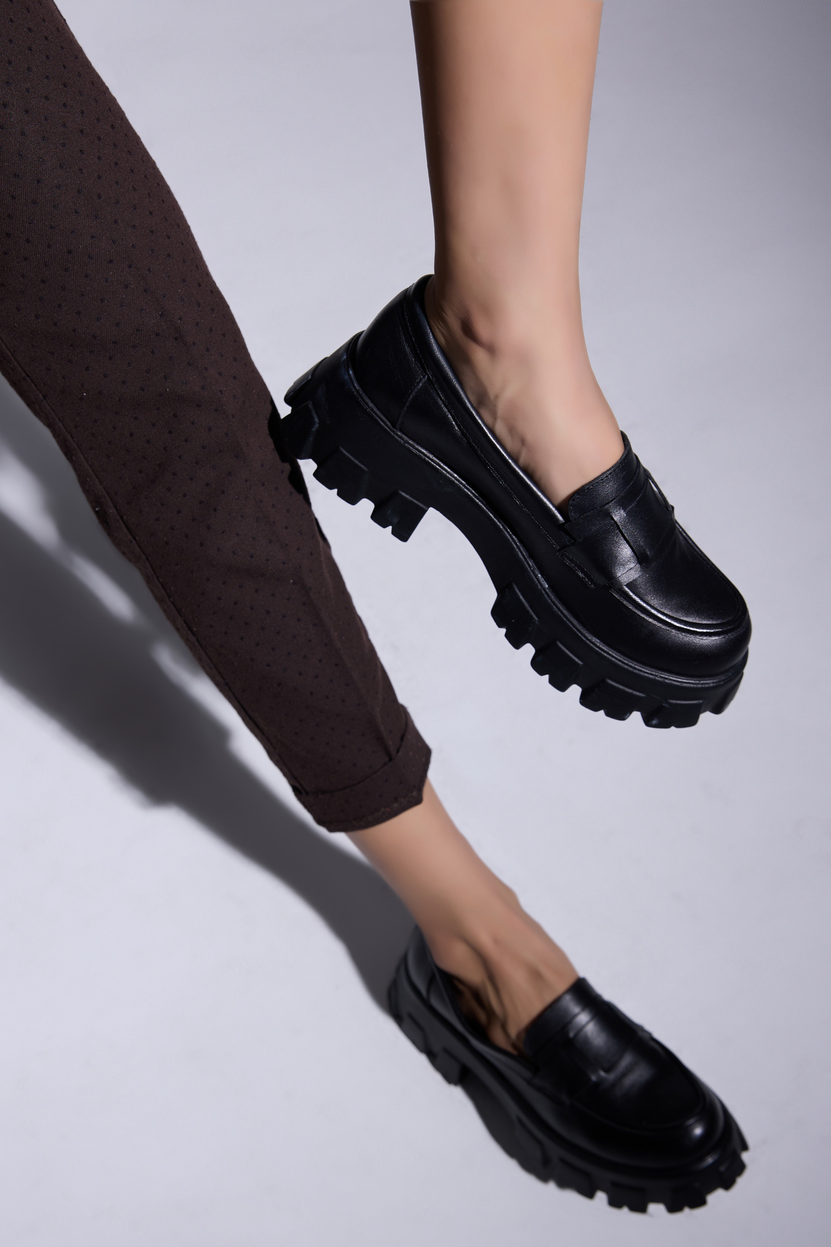 Karrie Siyah Kalın Taban Hakiki Deri Loafer Kadın Ayakkabı Karrie Siyah Kalın Taban Hakiki Deri Loafer Kadın Ayakkabı 132 65 40