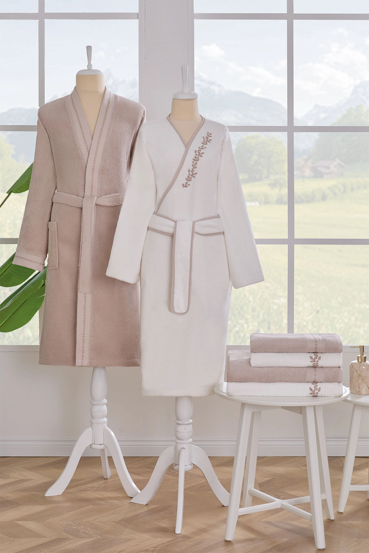 Flame Bambu Classic Aile Bornoz Seti Taş Kahve Flame Bambu Classic Aile Bornoz Seti Taş Kahve 45379 M/L