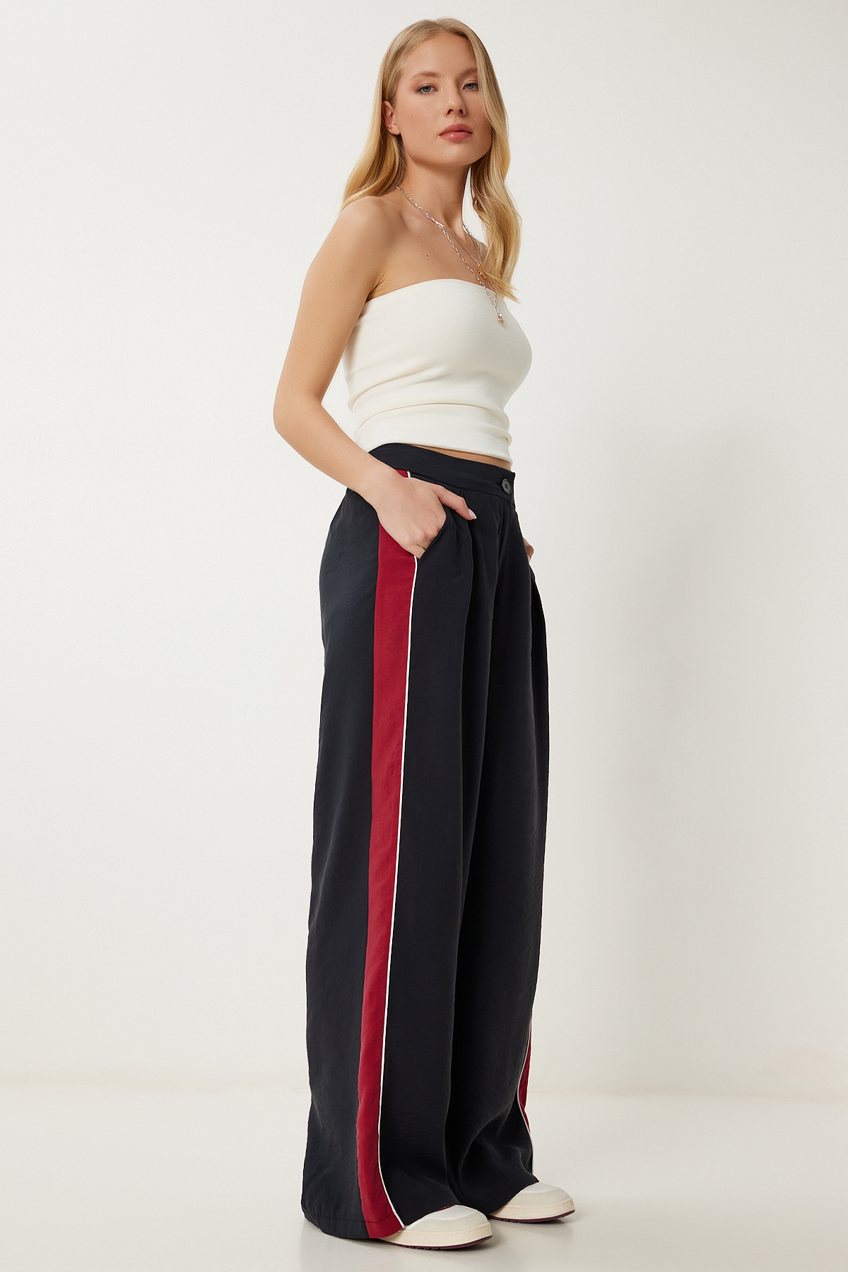 Kadın Siyah Kontrast Bel Detaylı Çizgili Dokuma Pantolon HL00006 Kadın Siyah Kontrast Bel Detaylı Çizgili Dokuma Pantolon HL00006 40
