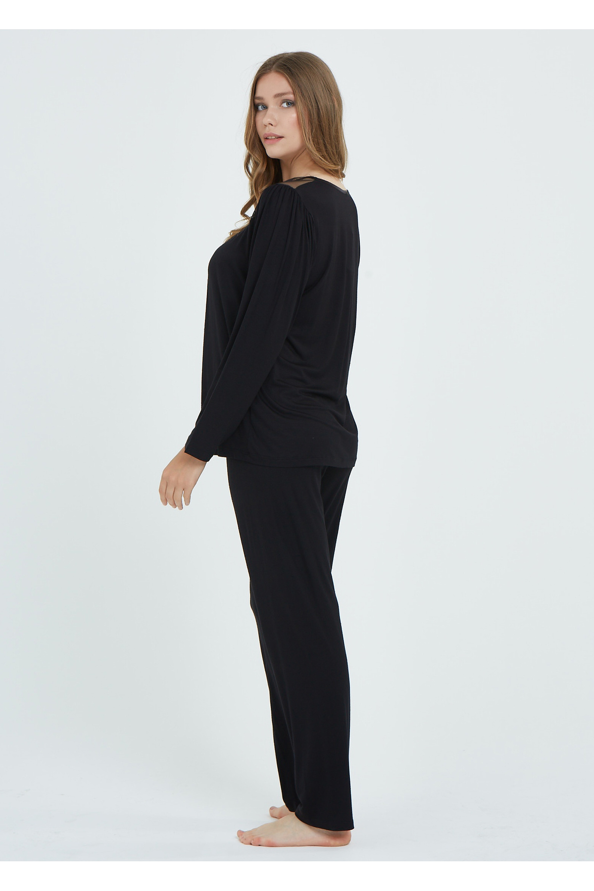 UZUN KOLLU DANTELLİ FİYONKLU PİJAMA TAKIMI UZUN KOLLU DANTELLİ FİYONKLU PİJAMA TAKIMI CRMK-5708 XL