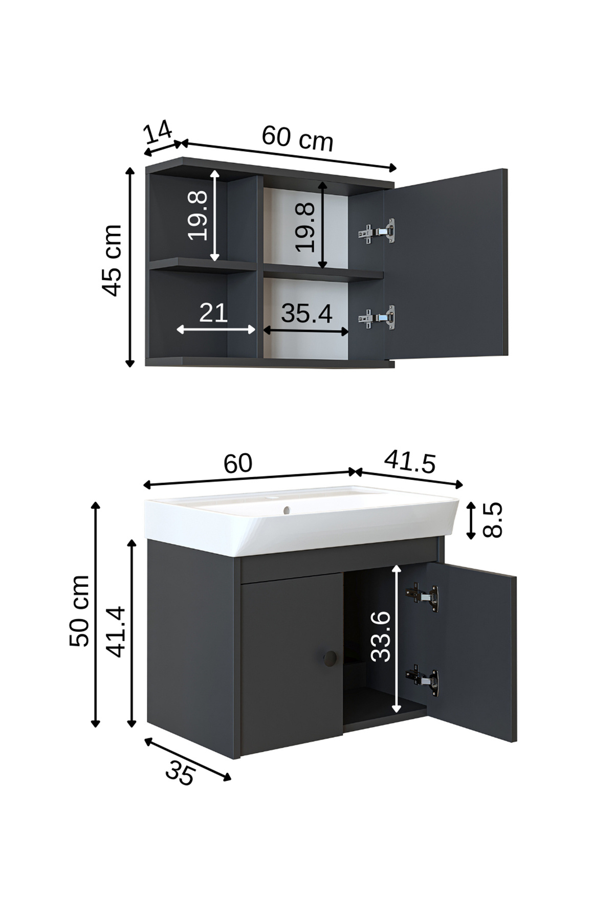 Lavabolu Mat Suntalam 60 Cm Banyo Dolabı + Aynalı Üst Dolabı Lavabolu Mat Suntalam 60 Cm Banyo Dolabı + Aynalı Üst Dolabı 2679 تک سایز
