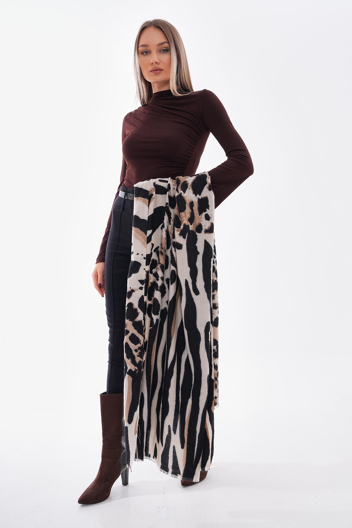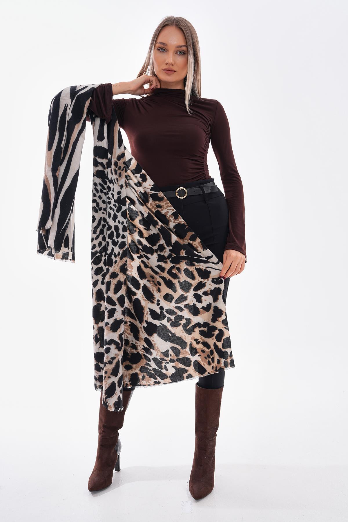15298 Yılan Desenli Kahverengi Şal 15298 Yılan Desenli Kahverengi Şal NWDESENLİŞAL تک سایز