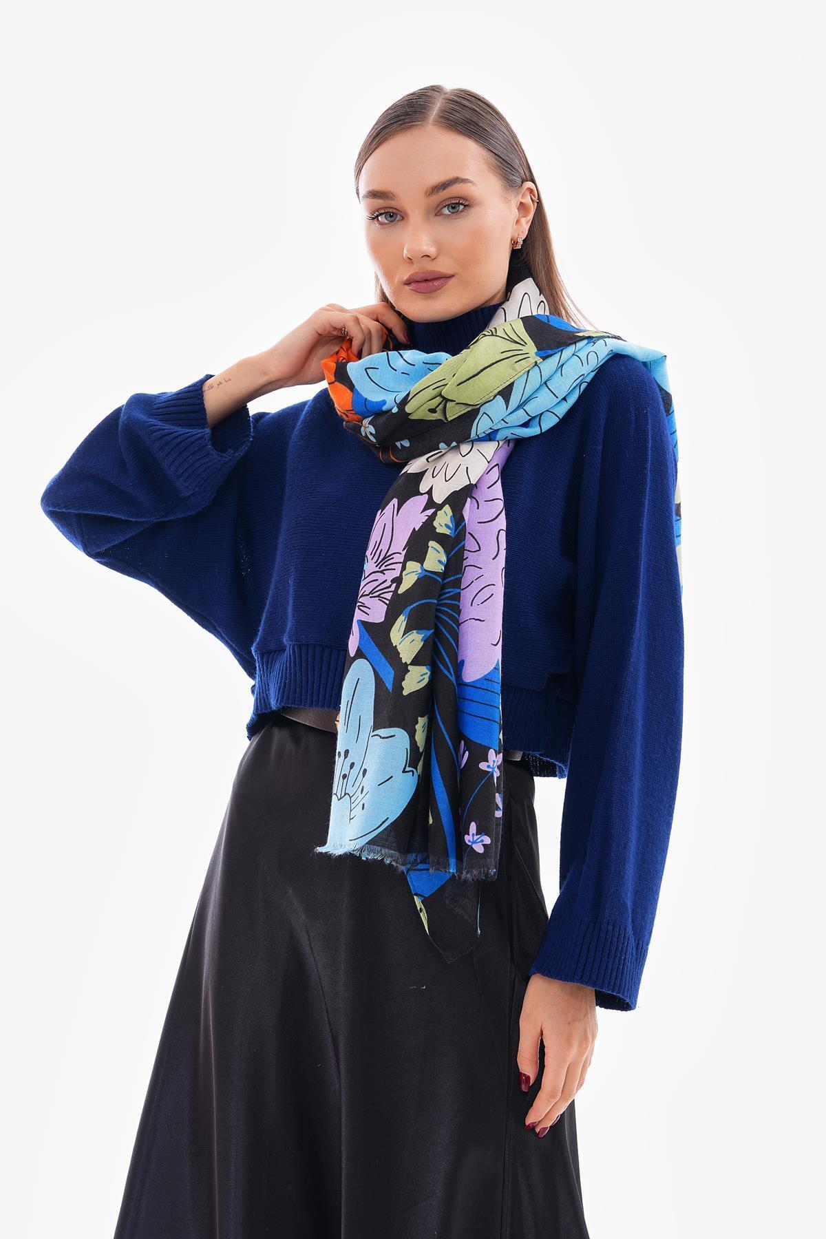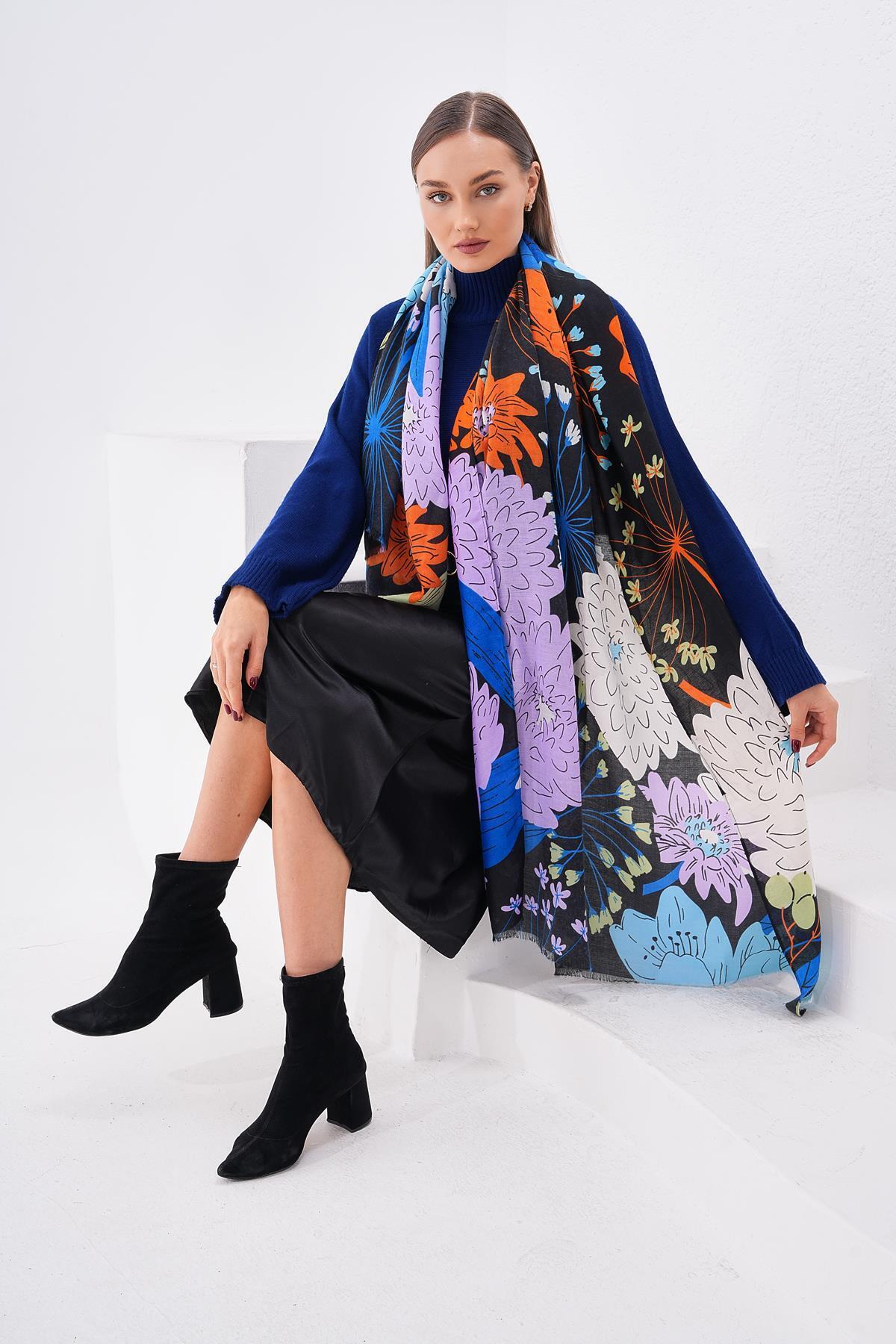 15219 Çiçek Desenli Siyah Şal 15219 Çiçek Desenli Siyah Şal NWDESENLİŞAL تک سایز