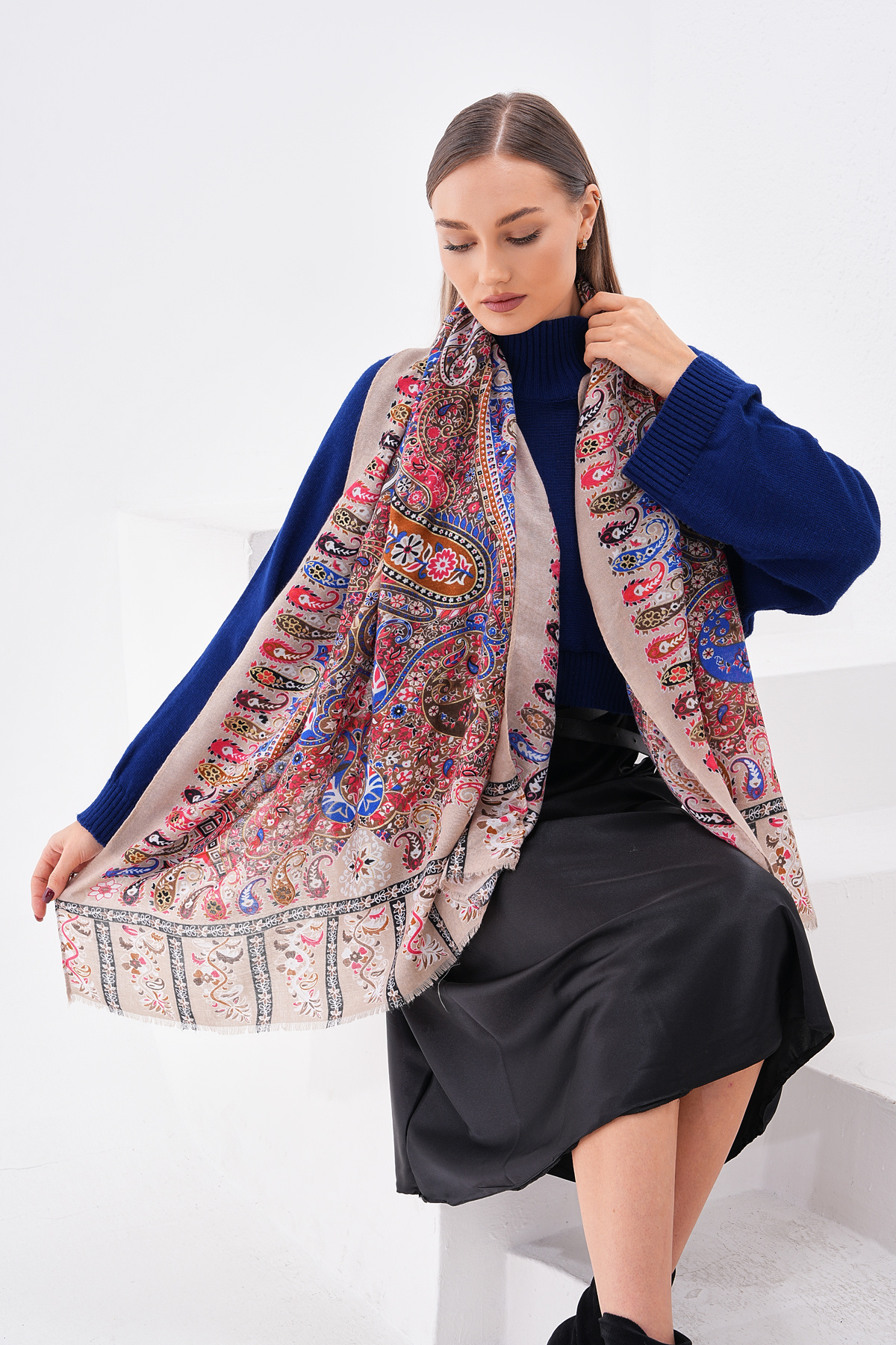 15176 Patchwork Desenli Bej Fransa Kumaşı Varaklı Şal 15176 Patchwork Desenli Bej Fransa Kumaşı Varaklı Şal NWDESENLİŞAL تک سایز