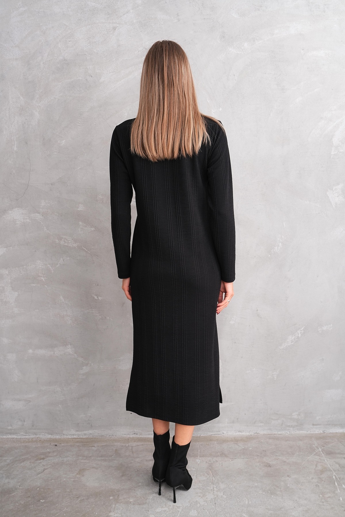 Kadın Saç Örgü Desen Yırtmaç Detaylı Uzun Elbise Kadın Saç Örgü Desen Yırtmaç Detaylı Uzun Elbise 4423-N 2XL