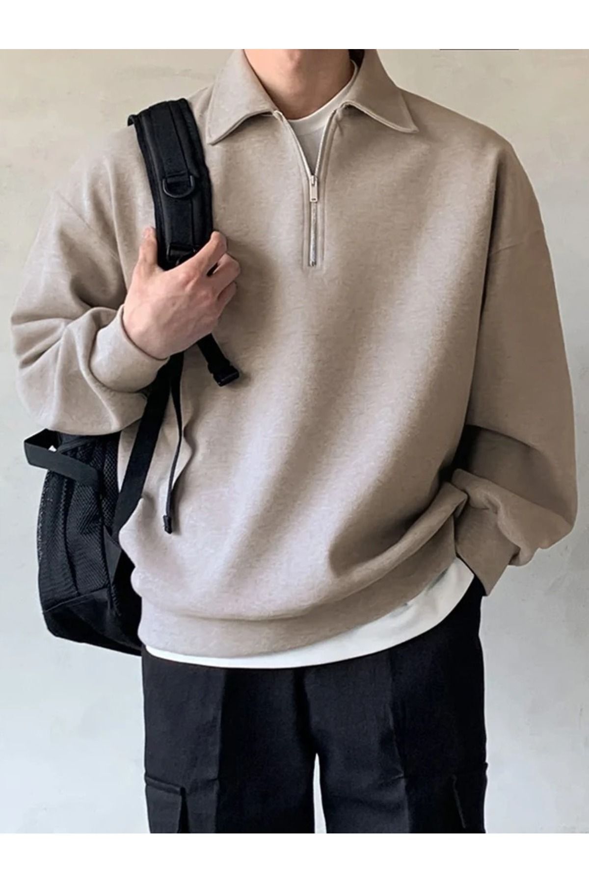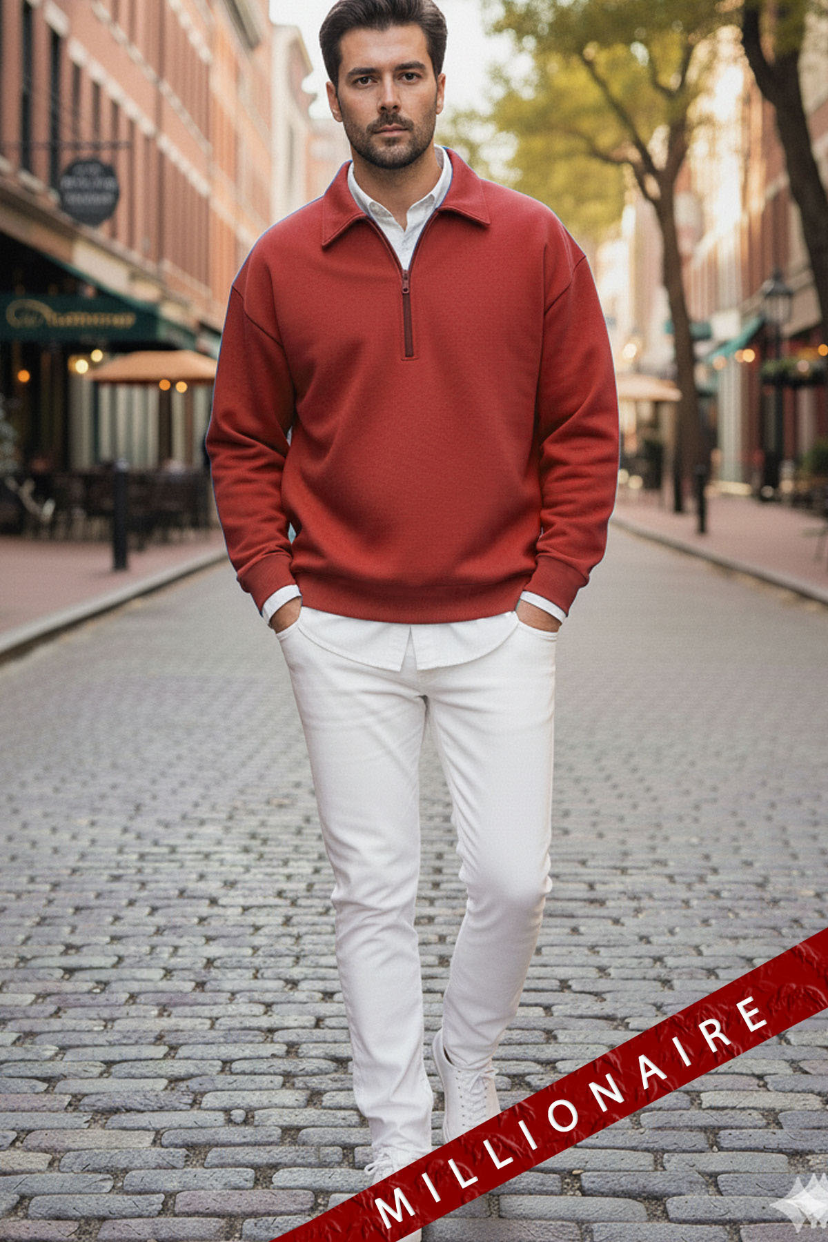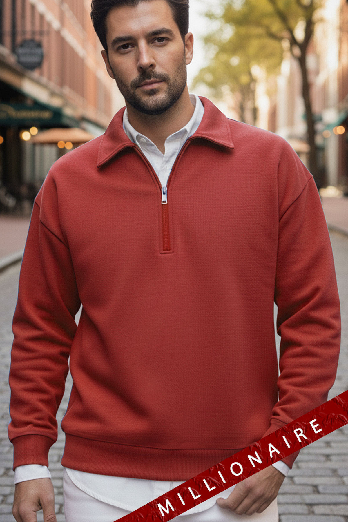 Erkek Kırmızı Yarım Fermuar Polo Yaka 3 İplik İçi Polarlı Şardonlu Oversize Sweatshirt Erkek Kırmızı Yarım Fermuar Polo Yaka 3 İplik İçi Polarlı Şardonlu Oversize Sweatshirt EK3035 XL/2XL