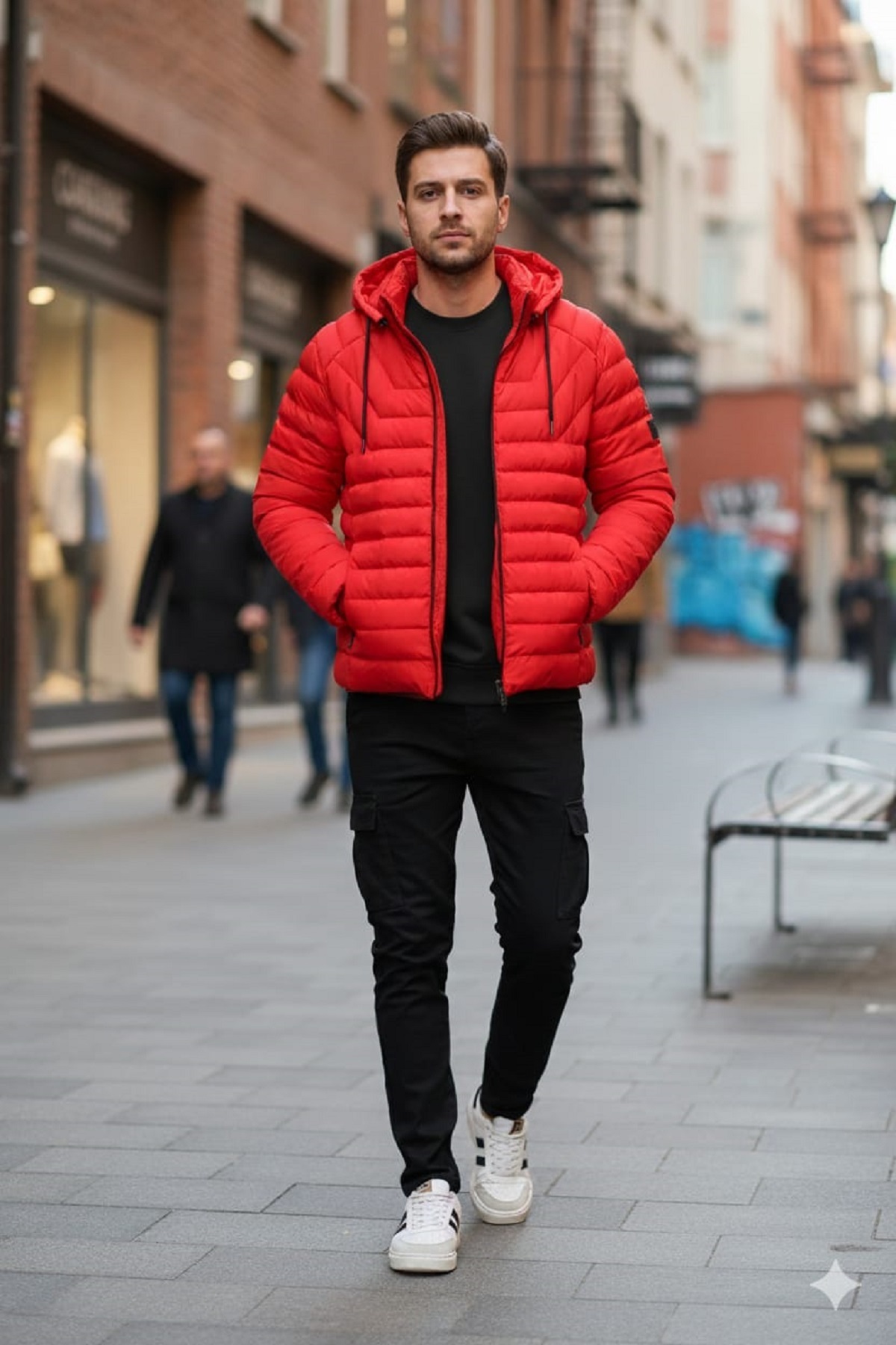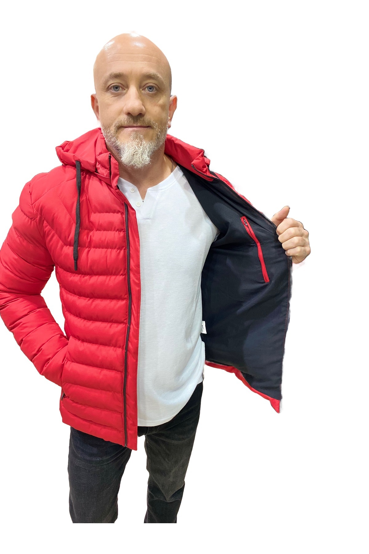 Erkek Kırmızı Kapüşonlu Şişme Mont Erkek Kırmızı Kapüşonlu Şişme Mont 3109 2XL