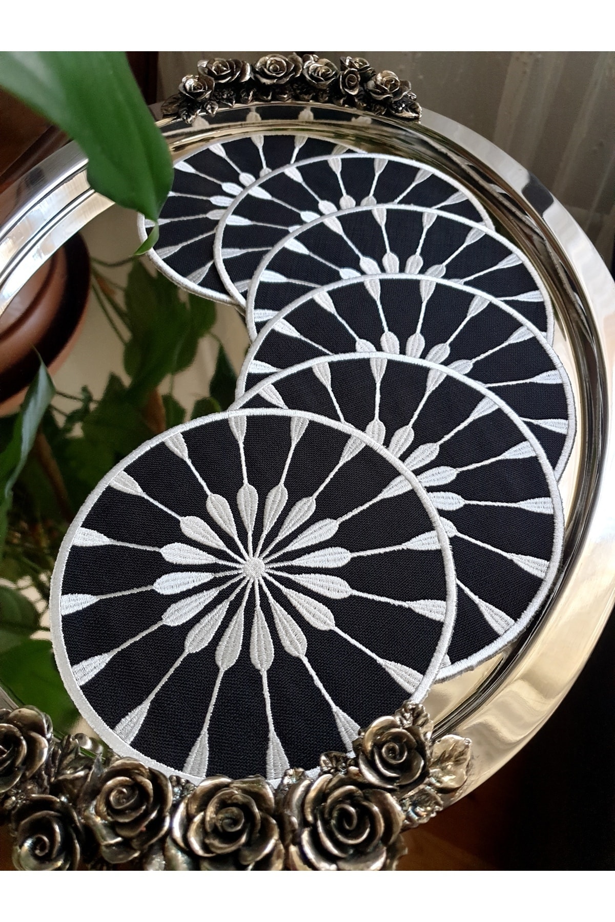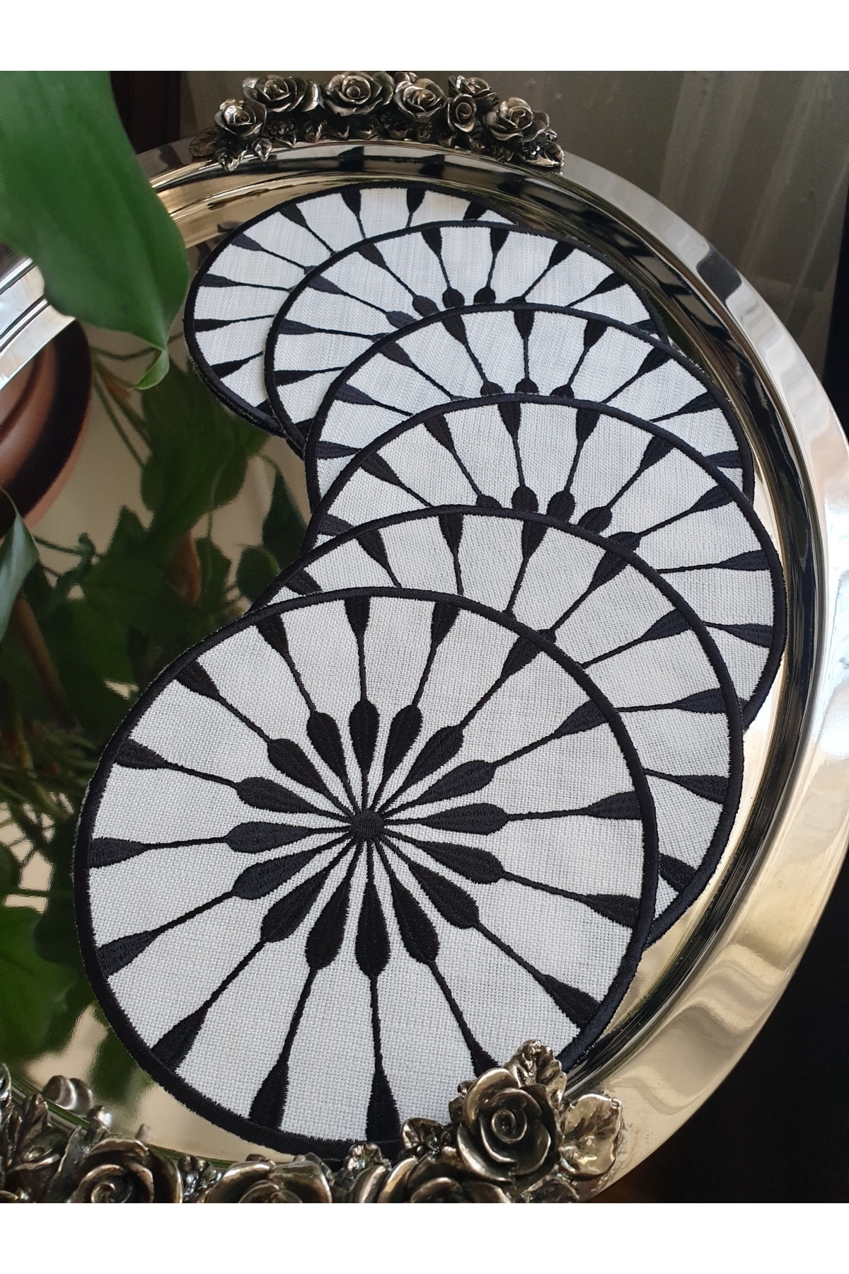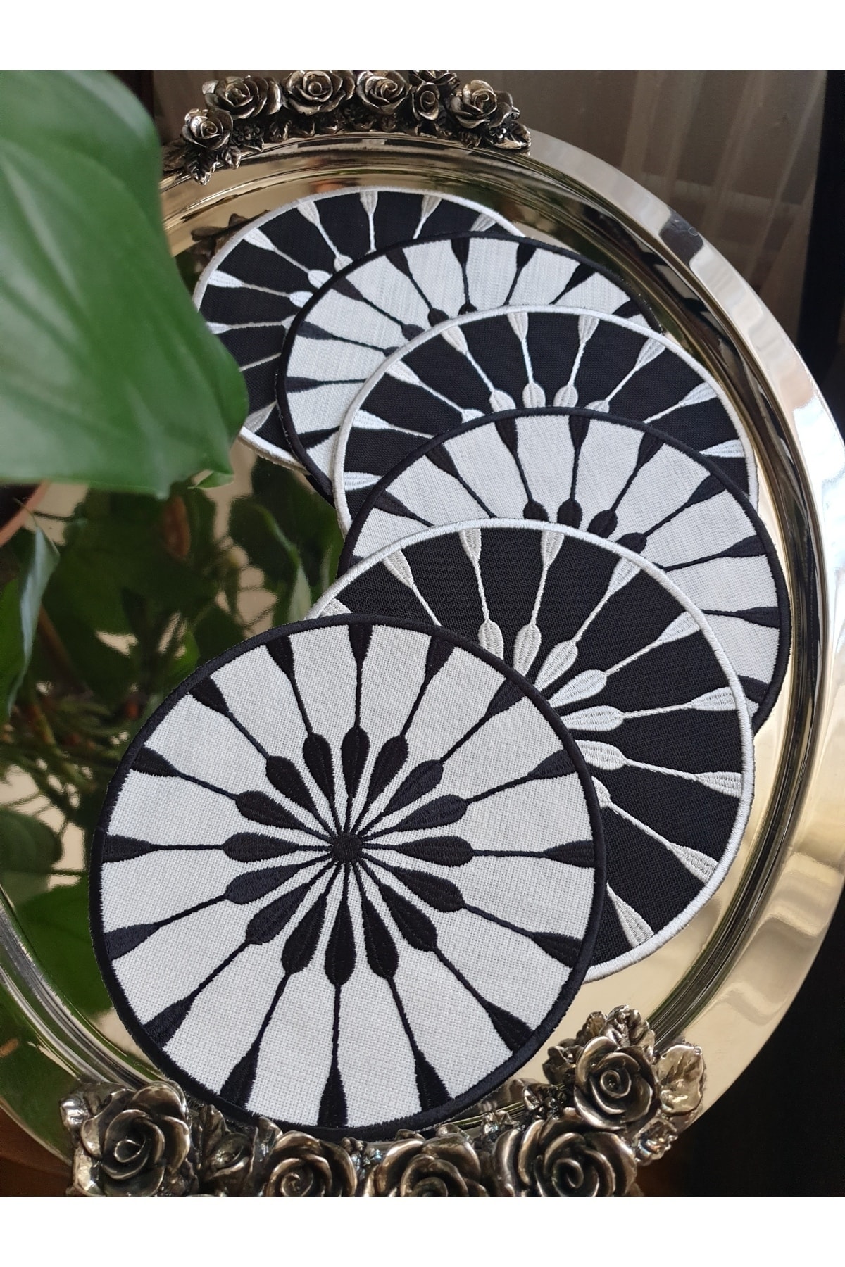 Zebra Desen Nakışlı Gardenya Keten Kumaş Kokteyl Peçetesi, Bardak Altlığı 6'lı Set Zebra Desen Nakışlı Gardenya Keten Kumaş Kokteyl Peçetesi, Bardak Altlığı 6'lı Set TNMZ210600 تک سایز