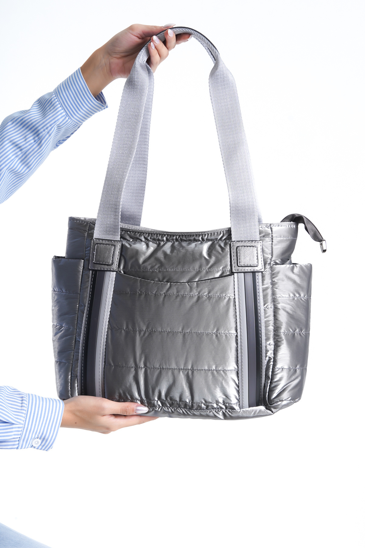 Kadın Paraşüt Kumaş Çanta Büyük Boy Şişme Fermuar Ve Yandan Bölmeli Şeritli Günlük Kol Omuz Çantası Kadın Paraşüt Kumaş Çanta Büyük Boy Şişme Fermuar Ve Yandan Bölmeli Şeritli Günlük Kol Omuz Çantası Shebella 2027-00 Bakır Standart