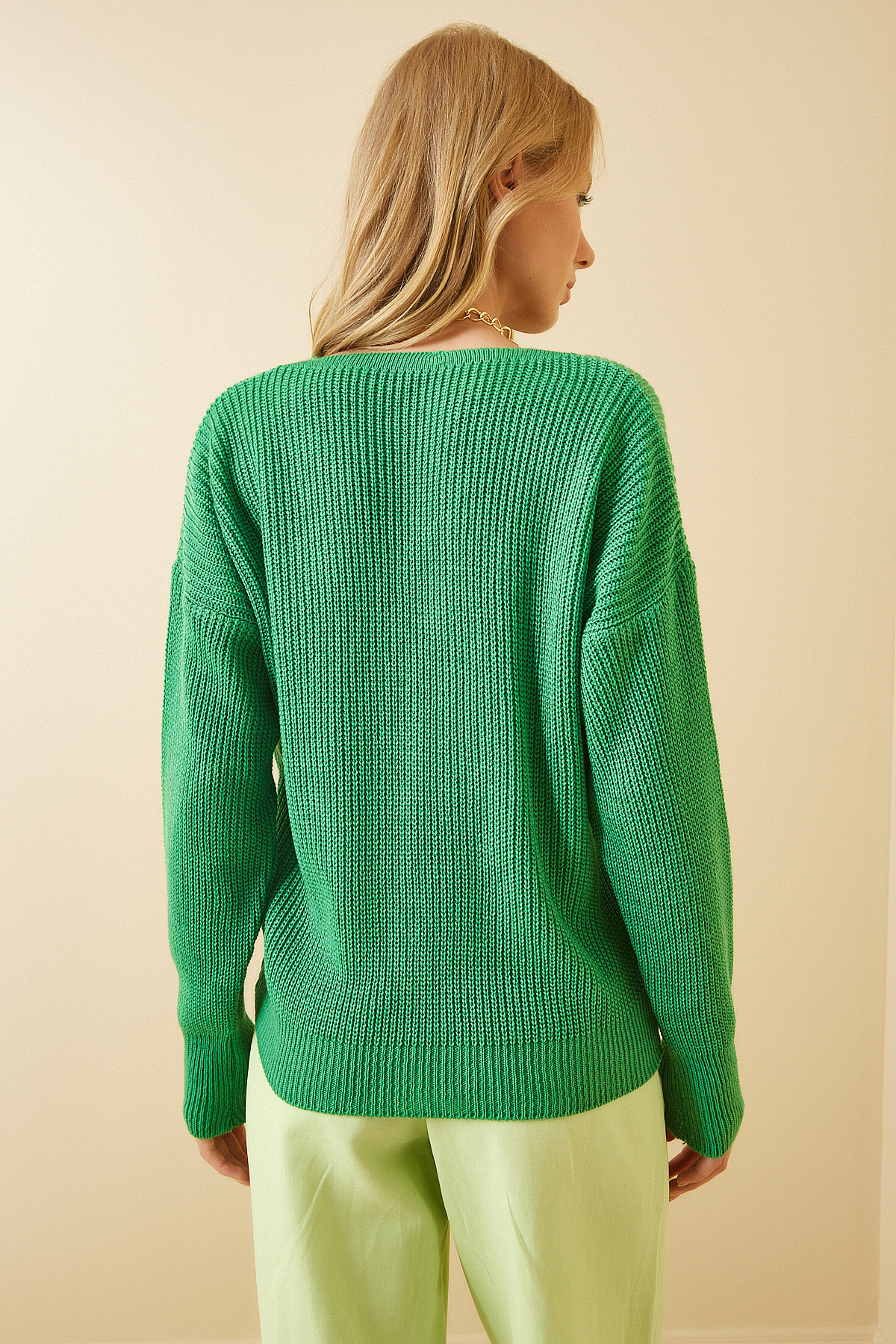 V Yakalı Düğmeli Triko Hırka KOYU YEŞİL LZA0009 V Yakalı Düğmeli Triko Hırka KOYU YEŞİL LZA0009 S/M
