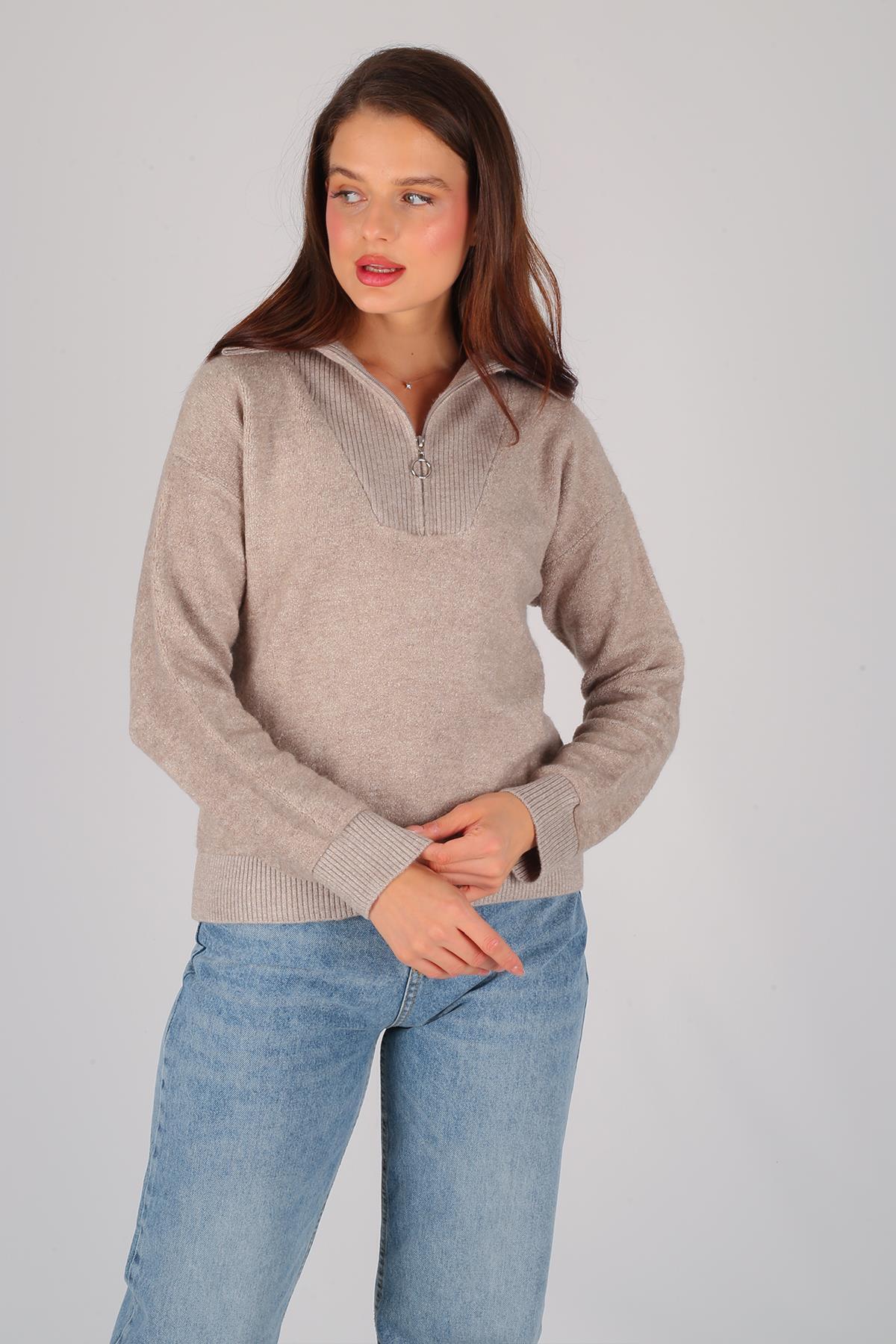 Kadın Vizon Yarım Fermuar Uzun Kol Kazak Kadın Vizon Yarım Fermuar Uzun Kol Kazak 5656567567 Standart