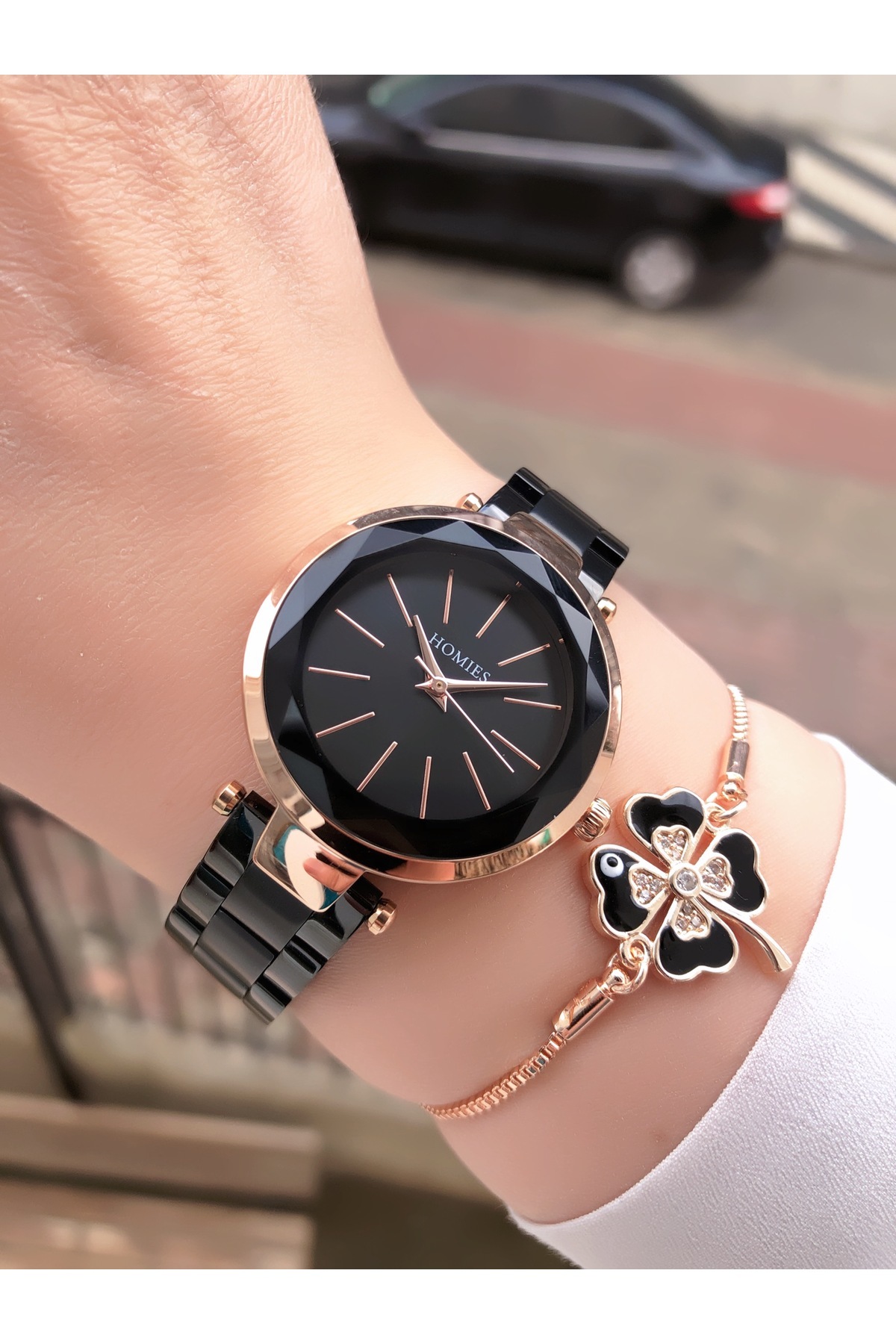 Mrd12146 Rose Siyah Renk Kadın Kol Saati Bileklik Hediyeli Mrd12146 Rose Siyah Renk Kadın Kol Saati Bileklik Hediyeli MRD12146 تک سایز