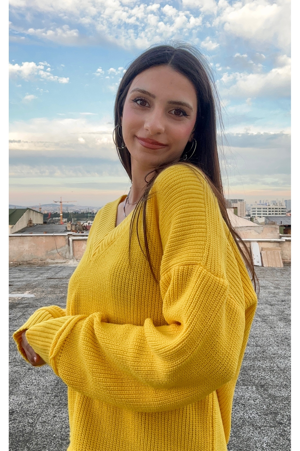 Kol-Etek Detaylı V Yaka OVERSİZE KAZAK Kol-Etek Detaylı V Yaka OVERSİZE KAZAK K-K012EKM1 Standart