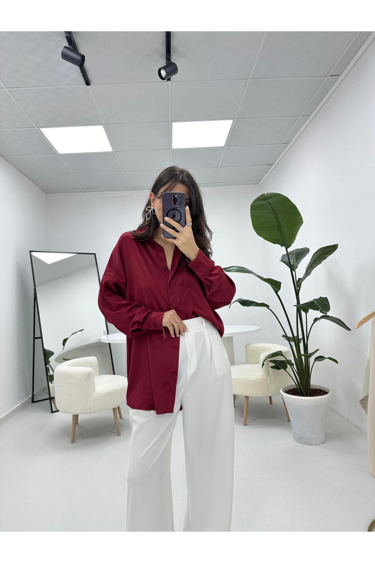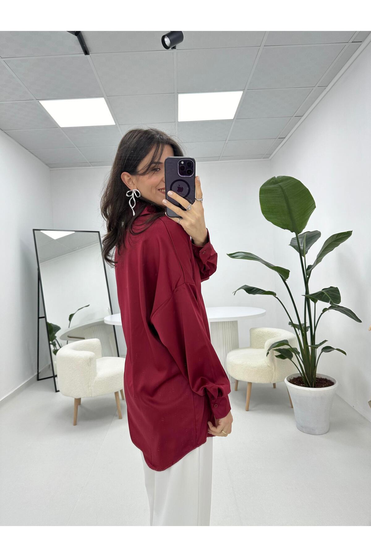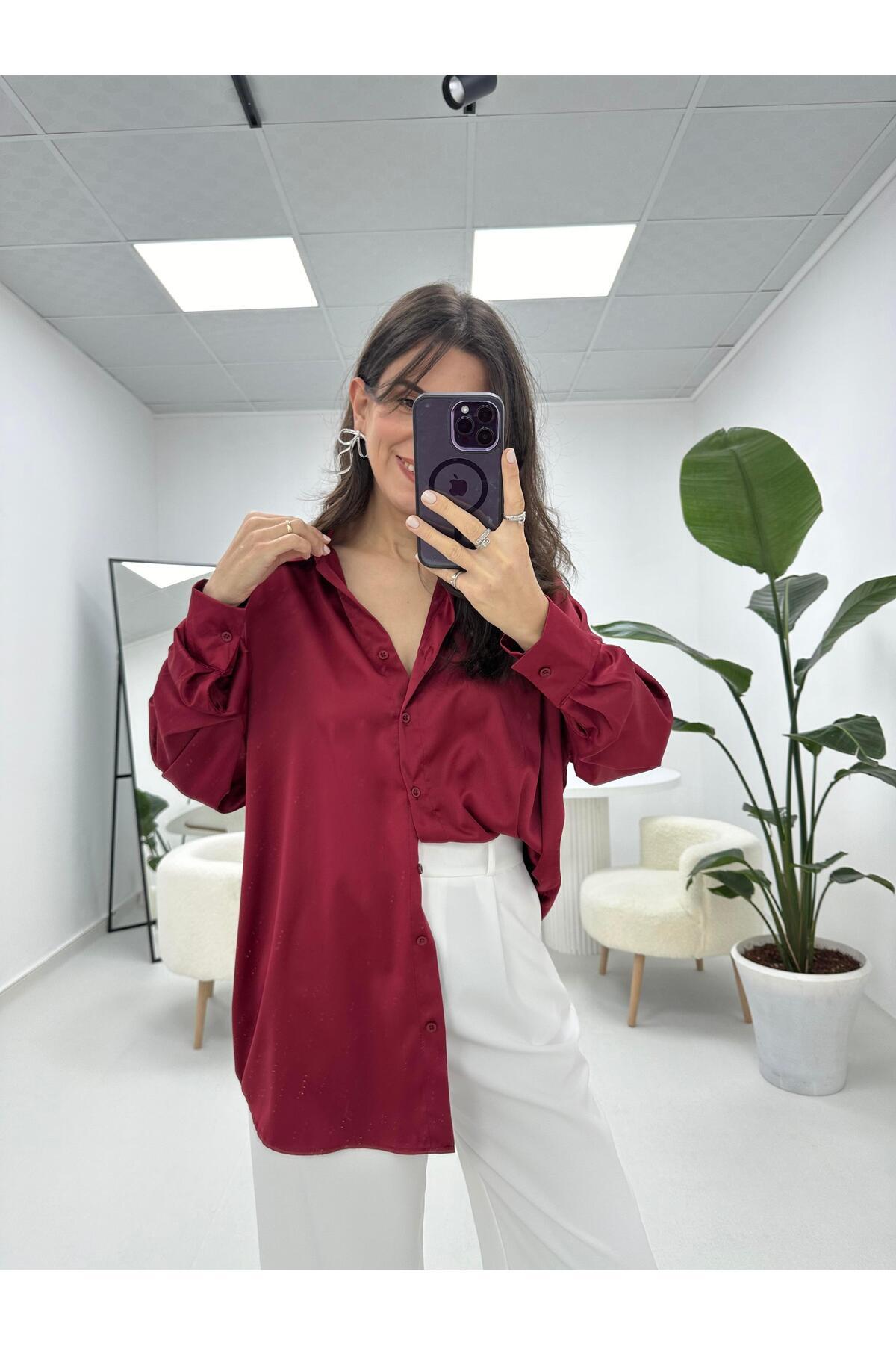 Saten Düğmeli Bordo Gömlek Saten Düğmeli Bordo Gömlek BTGM-1124 L