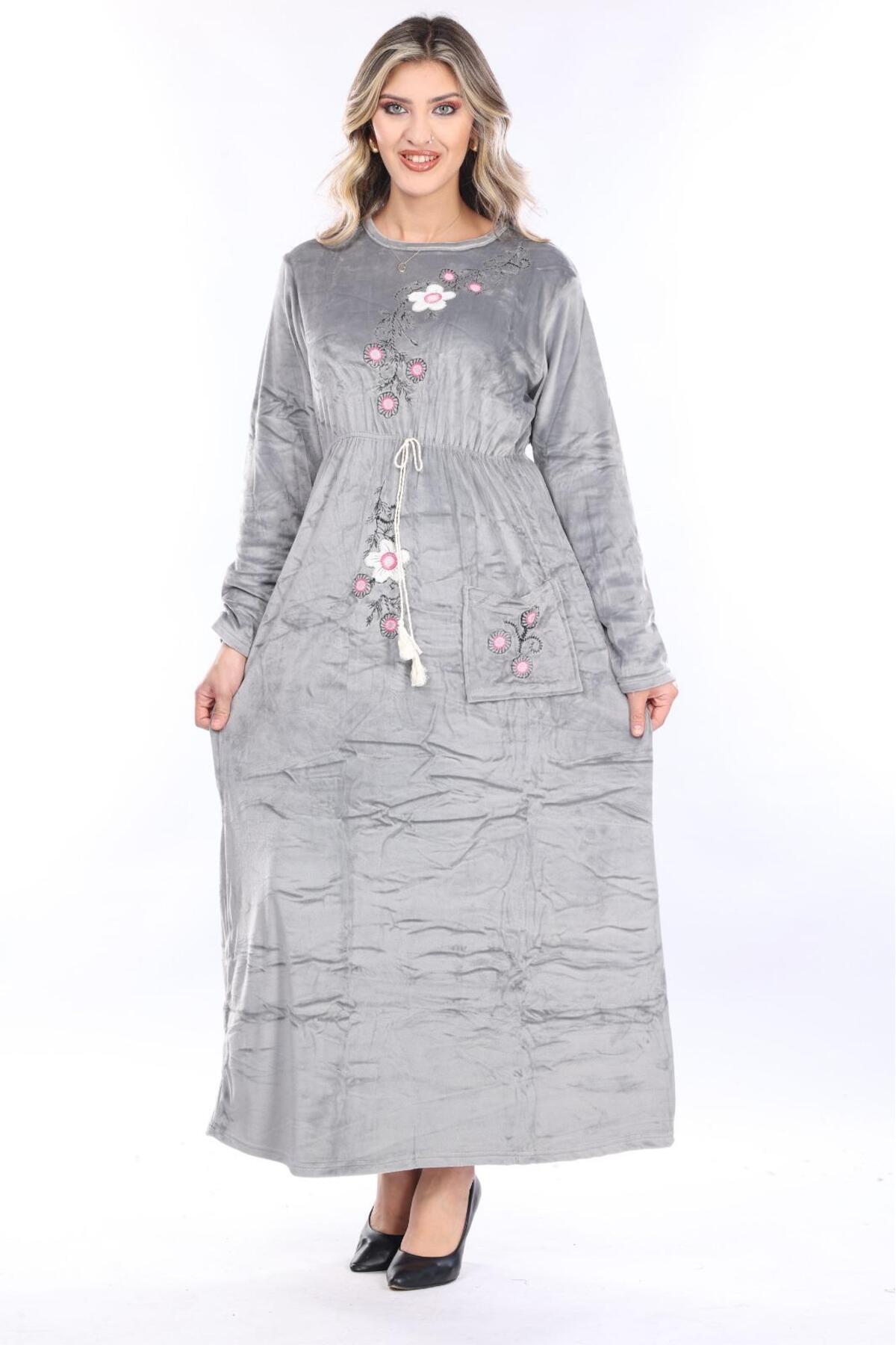 KADIN UZUN KOL KADİFE ELBİSE KADIN UZUN KOL KADİFE ELBİSE 387-0 3XL