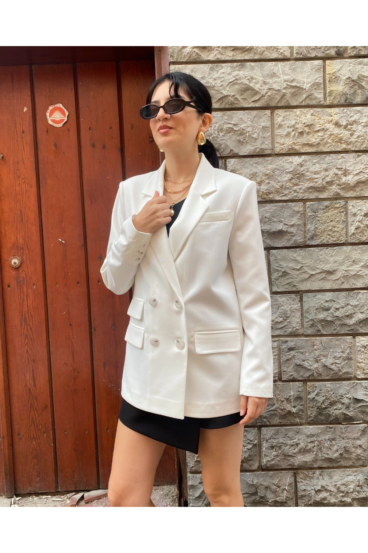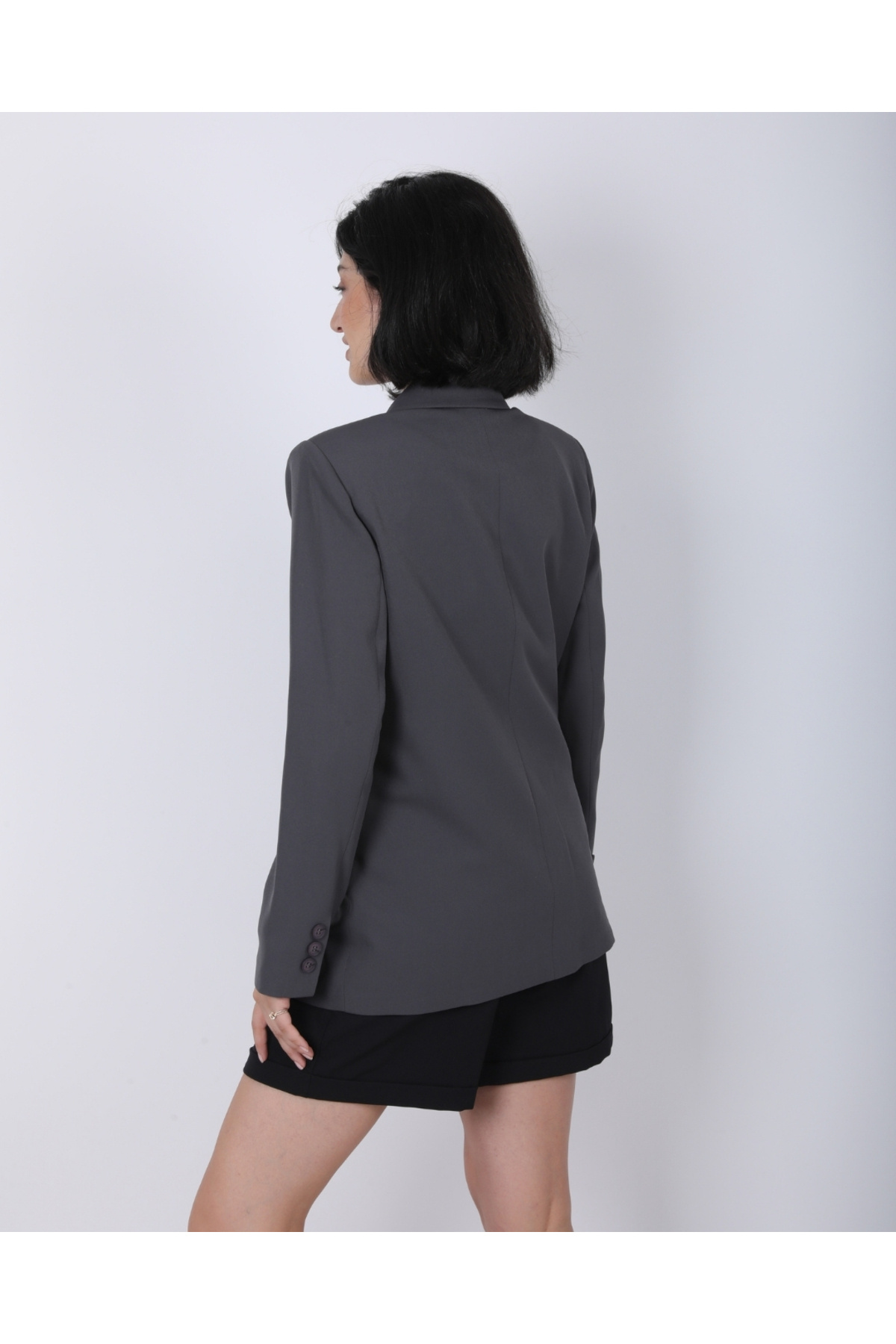 Kadın Antrasit Kruvaze Düğme Detaylı Oversize Blazer Ceket Kadın Antrasit Kruvaze Düğme Detaylı Oversize Blazer Ceket CKT10 42