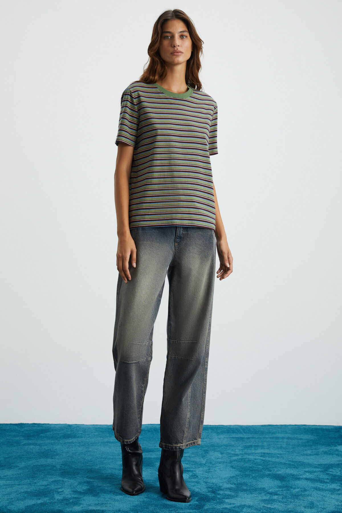 ELERA Kadın %100 Pamuk Çizgili Yuvarlak Yaka Yeşil / Desenli T-Shirt ELERA Kadın %100 Pamuk Çizgili Yuvarlak Yaka Yeşil / Desenli T-Shirt ELERA01082024 XL
