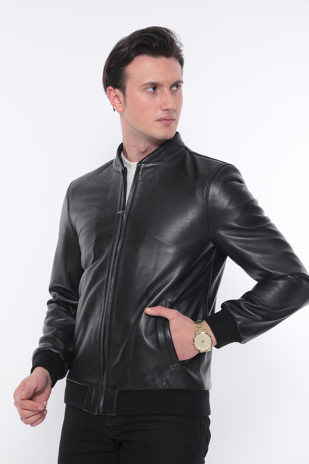 Spor hakiki deri ribanalı ceket Spor hakiki deri ribanalı ceket 1550scbl 5XL
