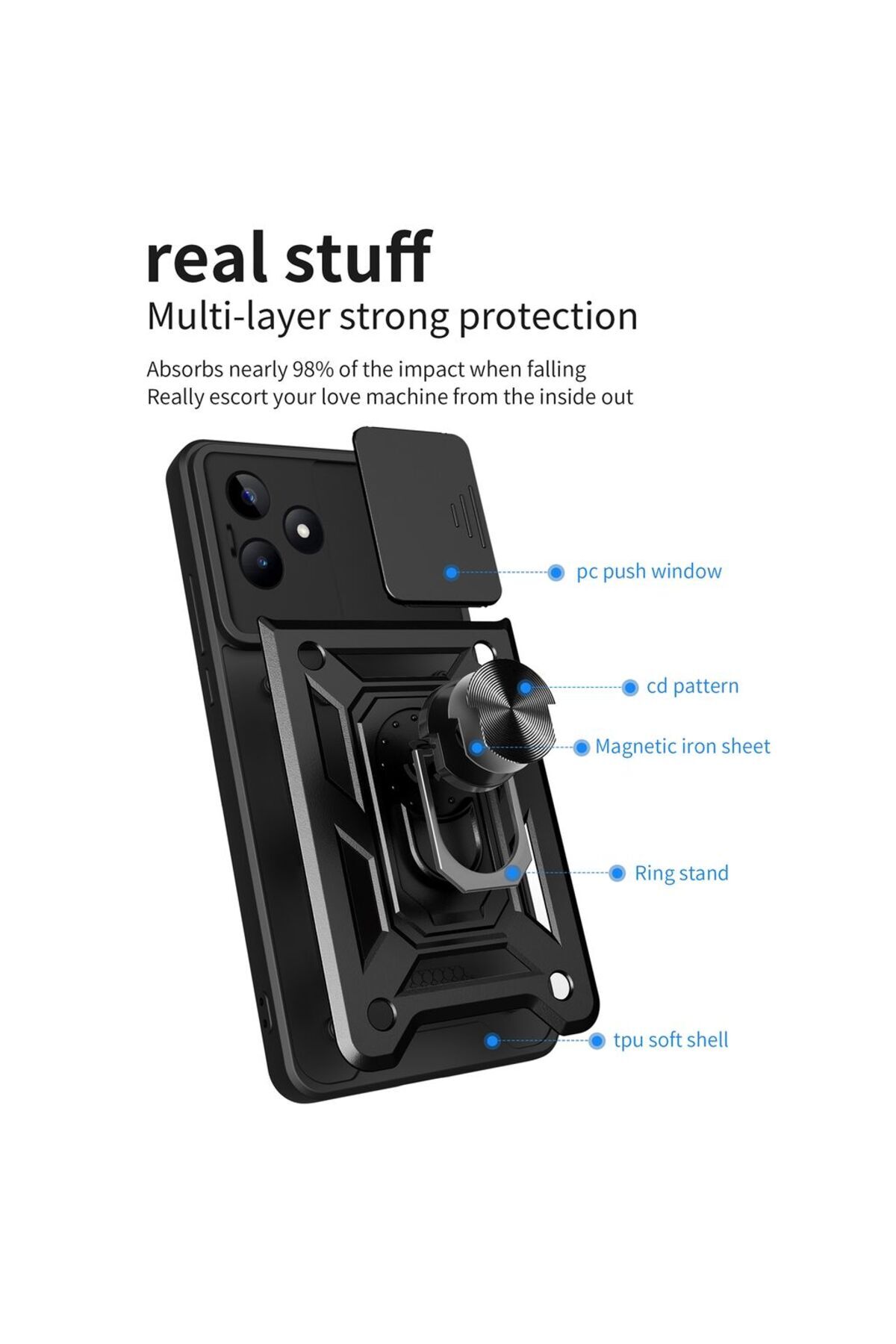 Realme C53 Uyumlu Kılıf Kamera Sürgülü Standlı Yüzüklü Darbe Emici Koruyucu Tank Kapak Realme C53 Uyumlu Kılıf Kamera Sürgülü Standlı Yüzüklü Darbe Emici Koruyucu Tank Kapak PARSLENSREALMEC53KILIF تک سایز