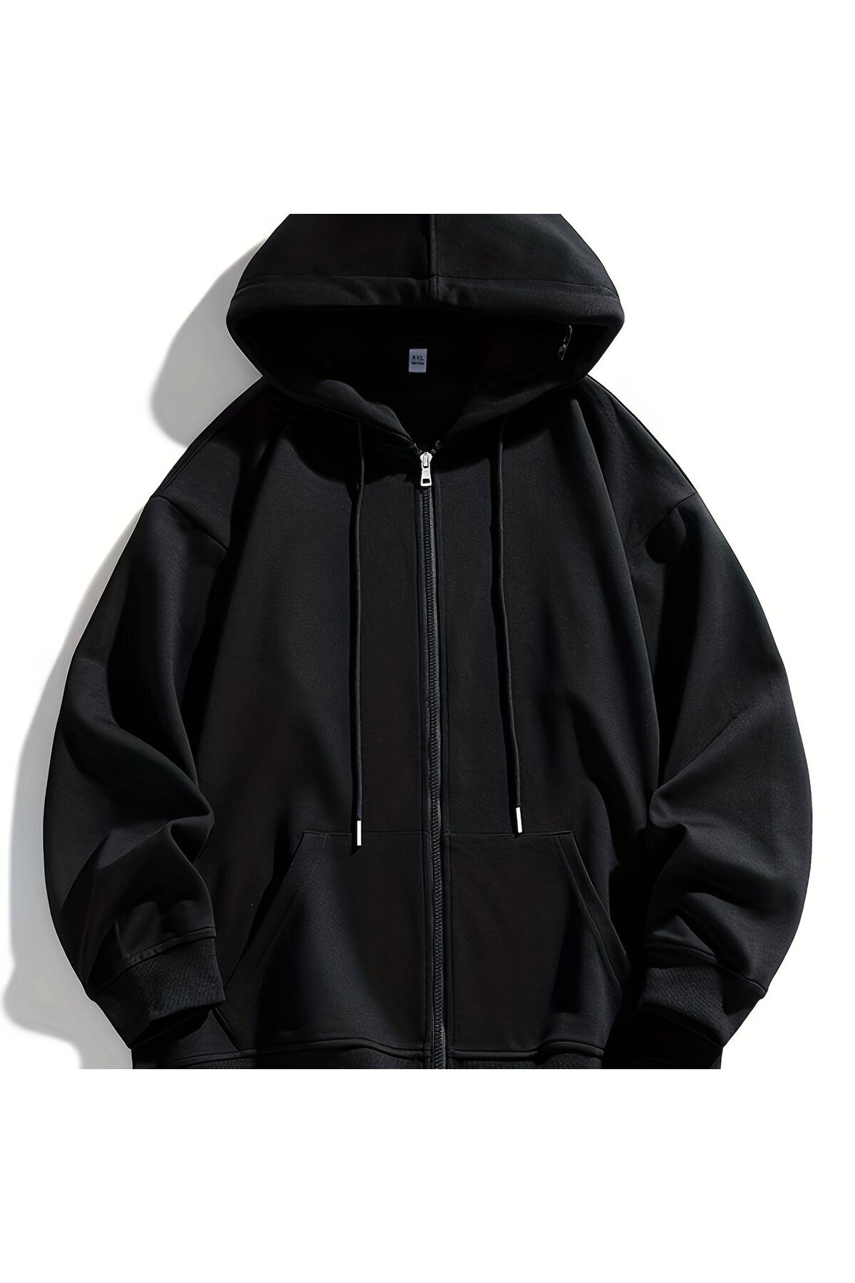 Siyah Şardonlu Kumaş Unisex Fermuarlı Kapşonlu Ceket Siyah Şardonlu Kumaş Unisex Fermuarlı Kapşonlu Ceket MLH11 2XL
